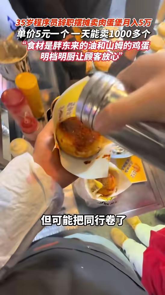 “万万没想到!”北京,一程序员因工作压力大,选择辞职,他没有继续干同一行的工作,反而开始摆摊,卖起了自己爱吃的肉蛋堡,没想到生意火爆,5块钱一个的东西,却让他月入5万左右,并且越做越大,都准备开分店了!网友:条条大路通罗马!