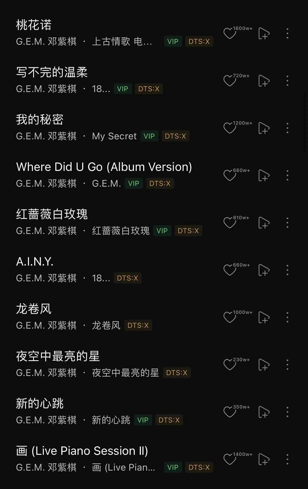 邓紫棋大巨蛋开出150场邓紫棋国内路人盘大得吓人,q音千万收藏的歌有13首,现役