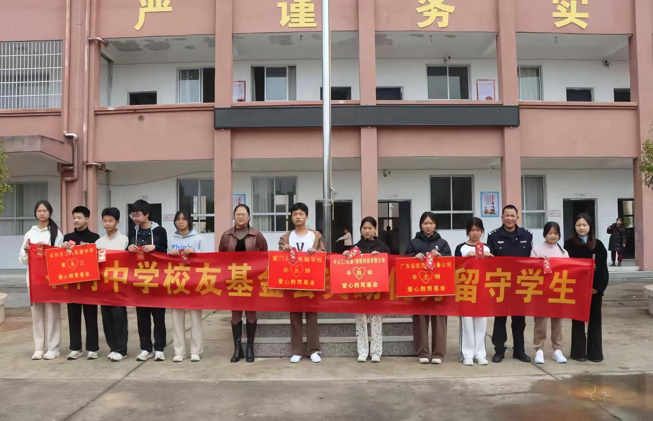 为石门中学优秀的留守学生发放 3 月份资助金,感谢郑云辉、平胜林、平志明、黄永江