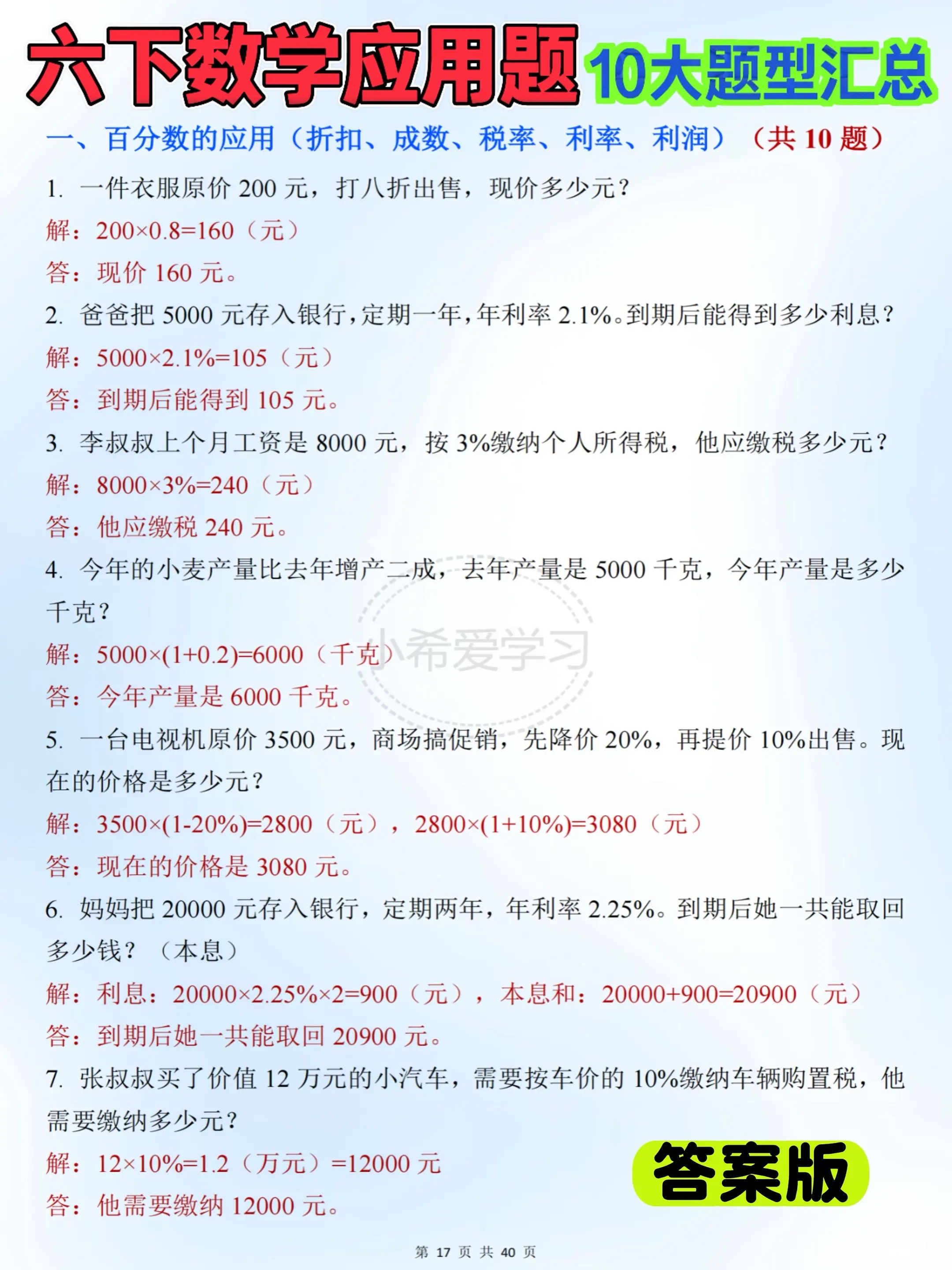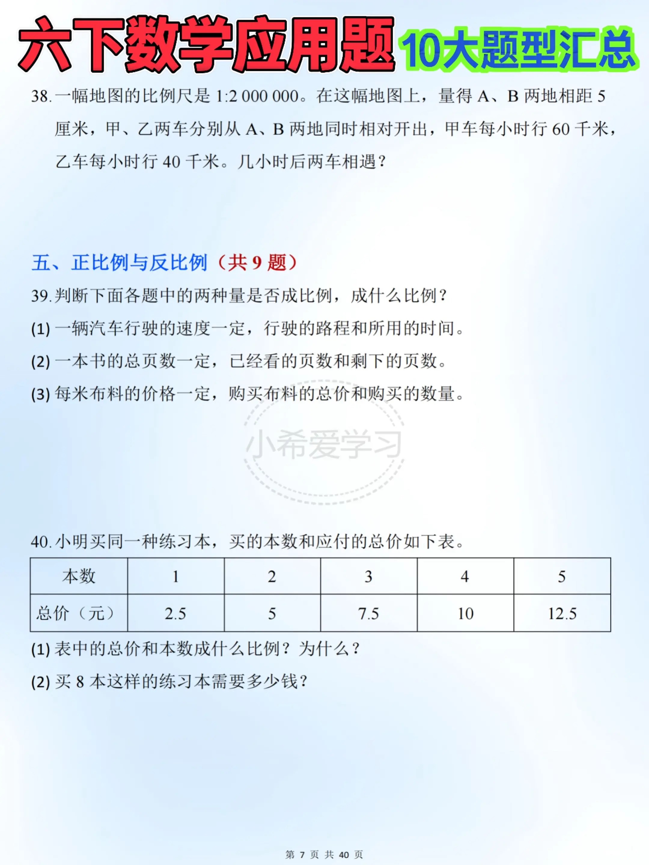 整理好十大常考必练题型,紧跟课内学习进度,全覆盖百分数应用、圆柱圆锥、比例尺、正反比例等核心知识点。
