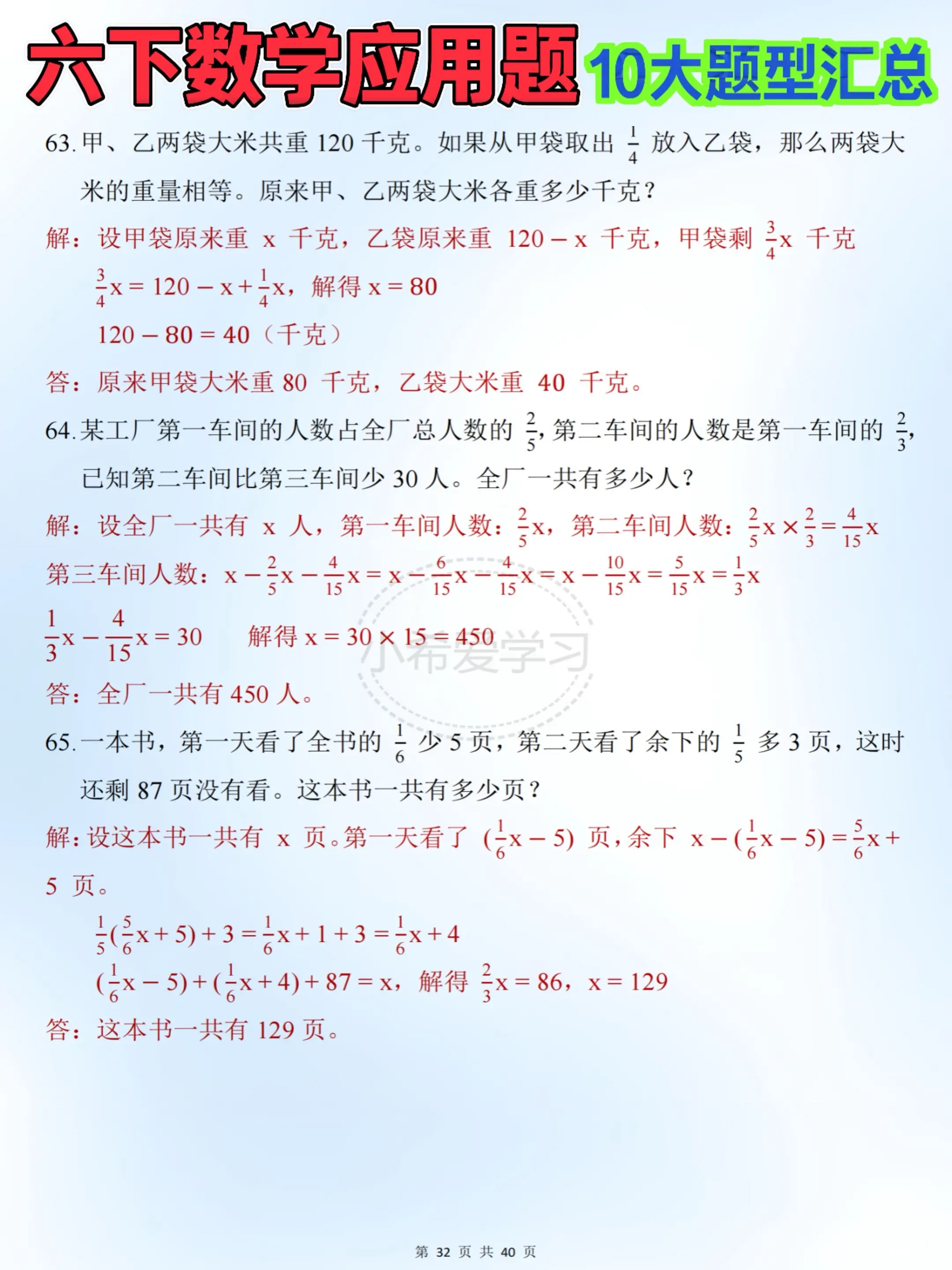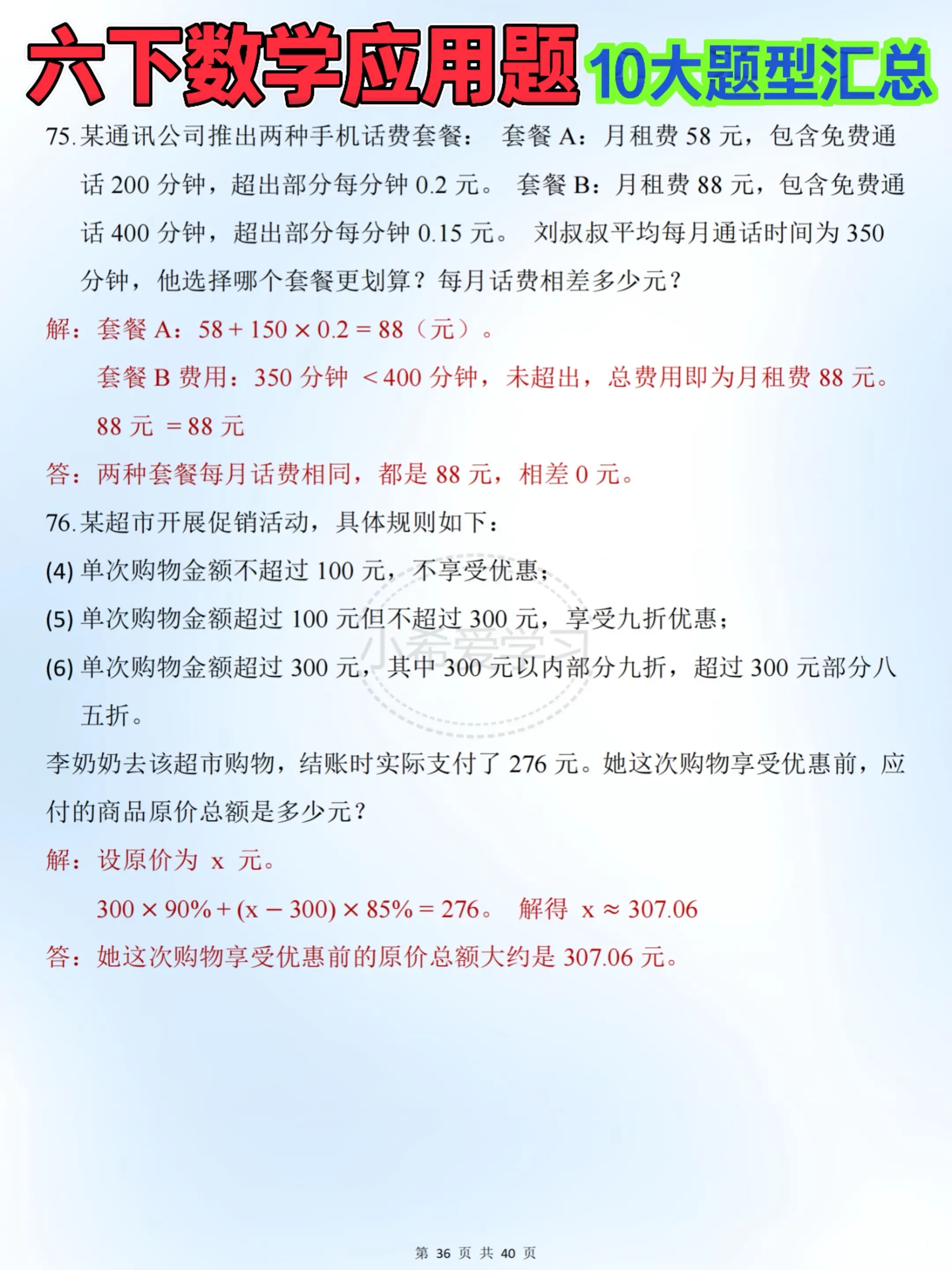 六下数学10类常考题 同步练习超实用。六年级下册数学日常学习超省心✨ ...