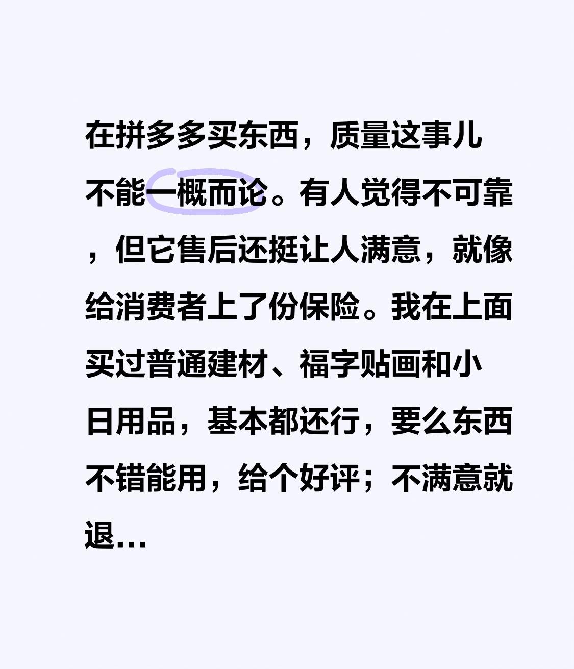 在拼多多买东西,质量这事儿不能一概而论。有人觉得不可靠,但它售后还挺让人满意,就像给消费者上了份保险。