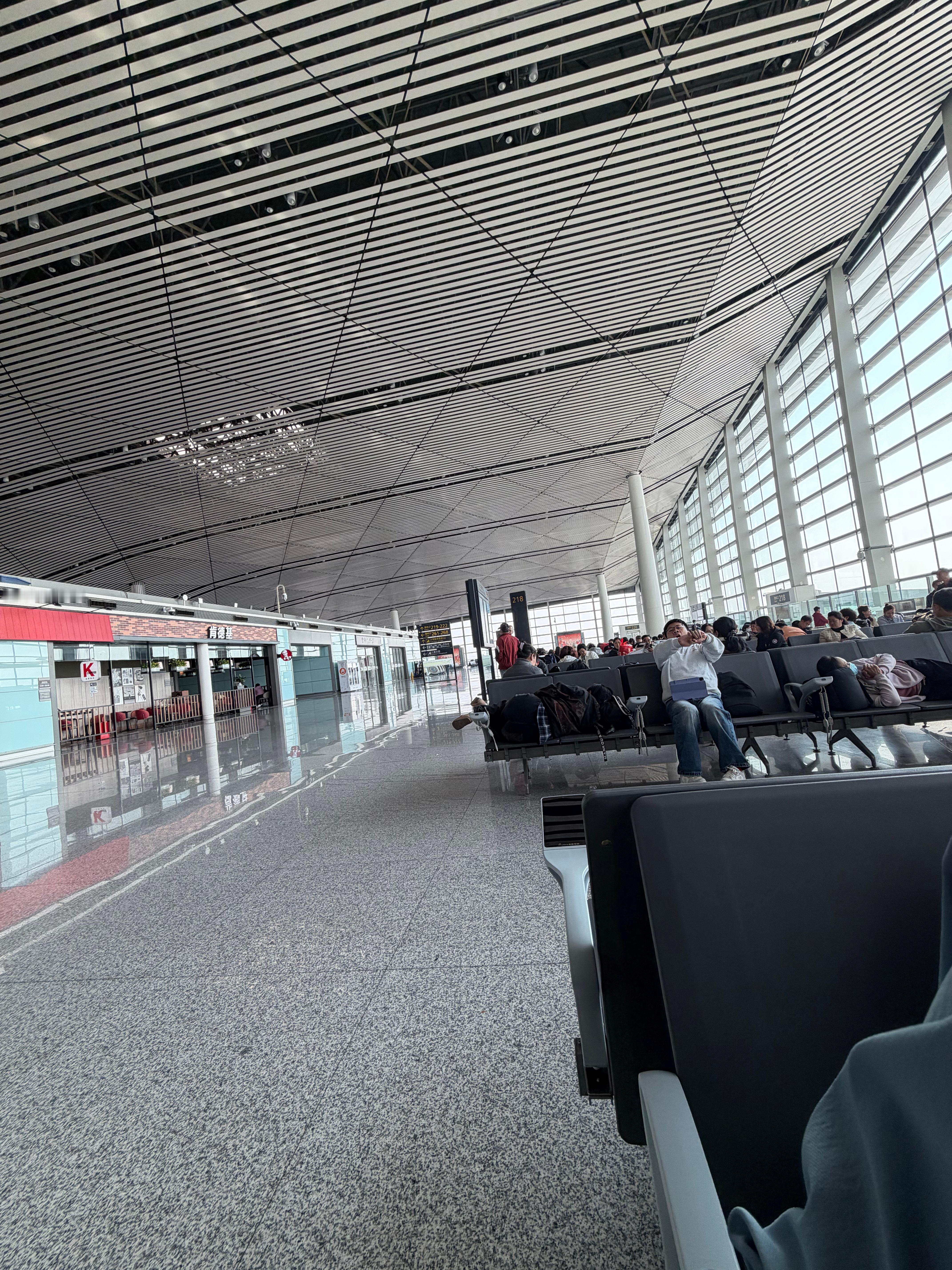 天津机场空空如也就这班延误了,其他的都正常飞。早知道买延误险能赚一笔预计10点半