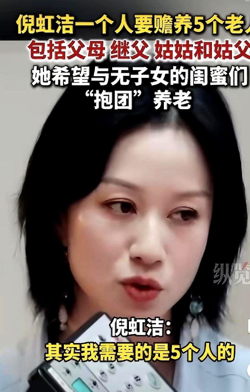 演员倪虹洁,镜头前光鲜亮丽。 但镜头外,她一个人,要养五个老人。 自己的亲生父母