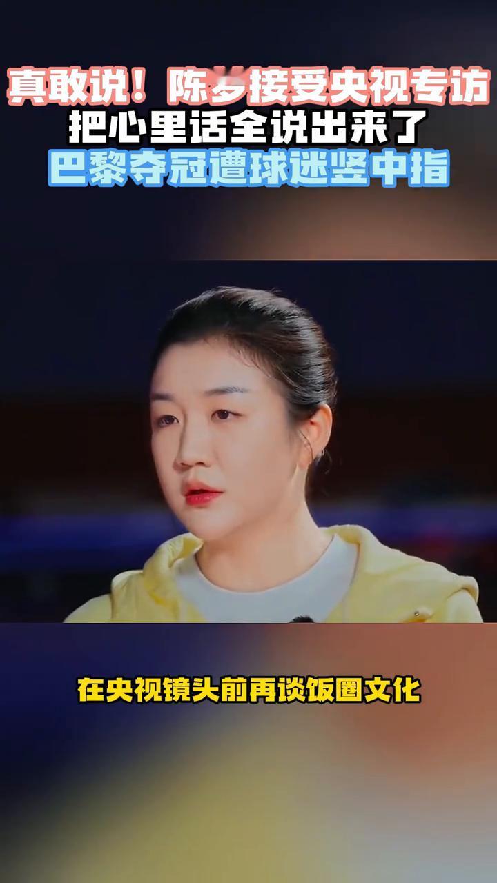 真敢说!陈梦接受央视专访,把心里话全说出来了,巴黎夺冠遭球迷竖中指。