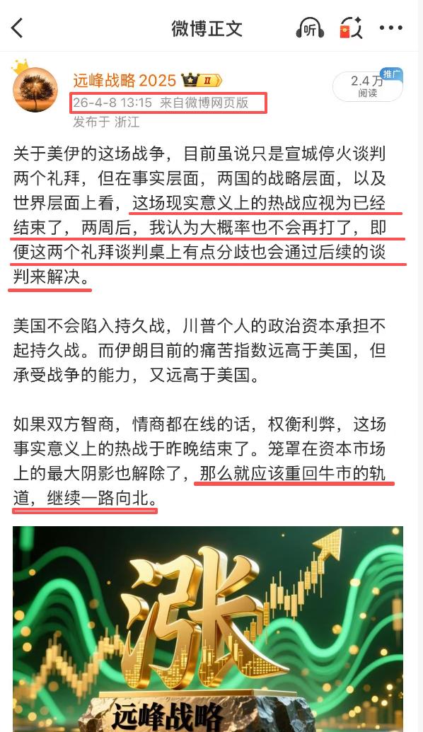对于美伊之间的战争,最好的判断就是基于利弊的权衡,在此之下,才是自己的判断与认知,才能不被各种自媒体带偏了节奏。