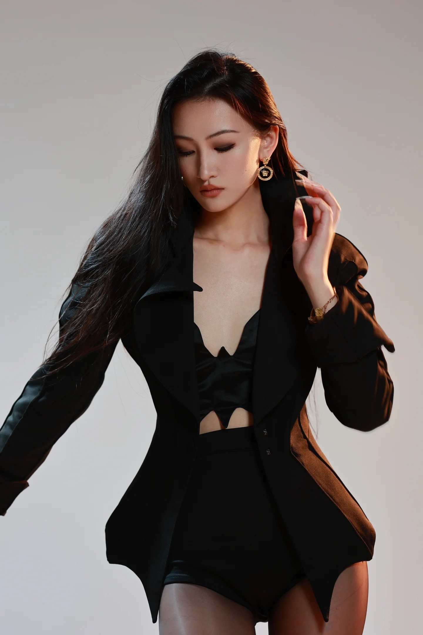 杨幂一袭金鳞露肩礼服,将贵气与柔美揉进每一寸细节。亮片如羽翼缀满裙身,在光影间流