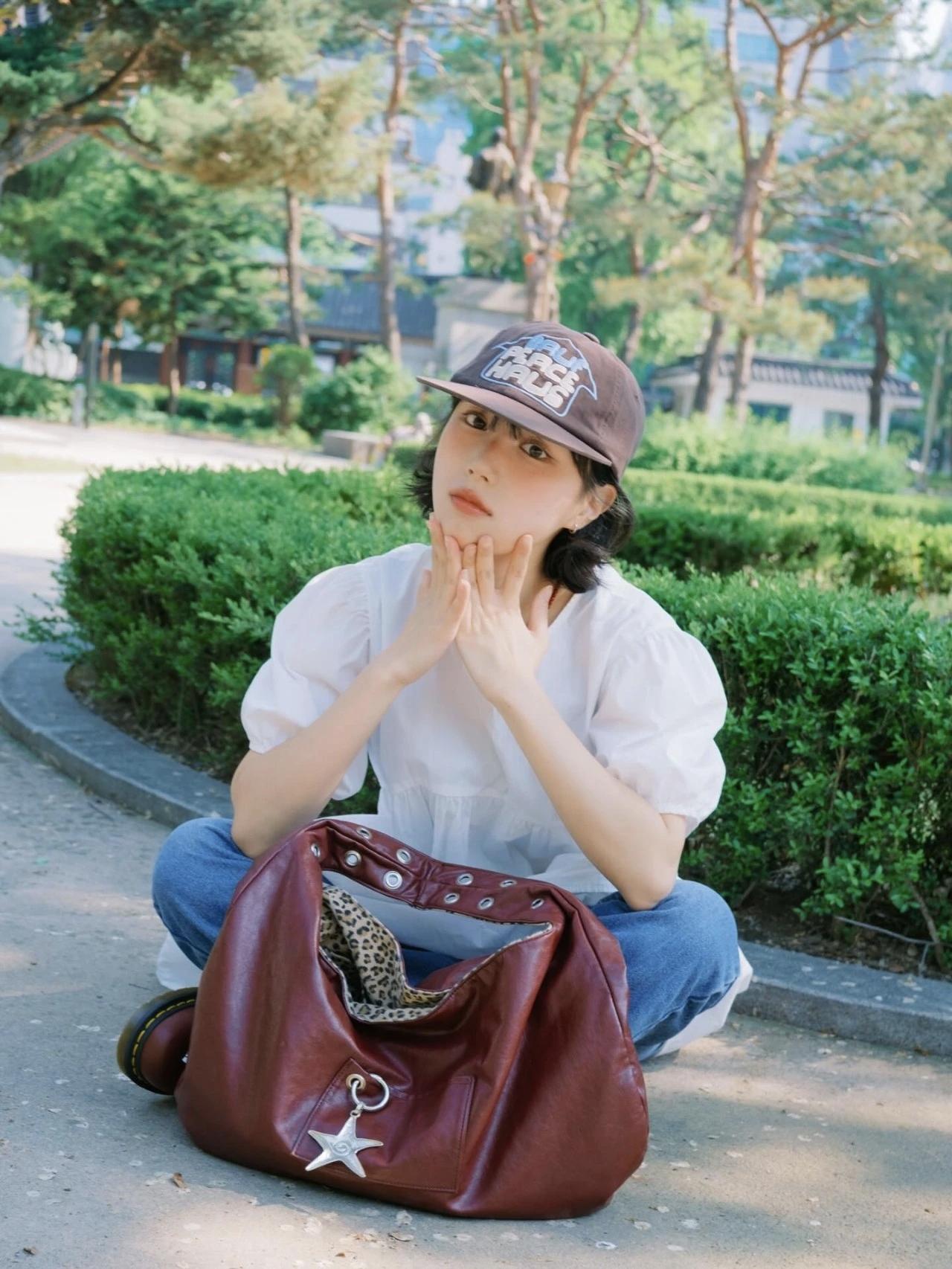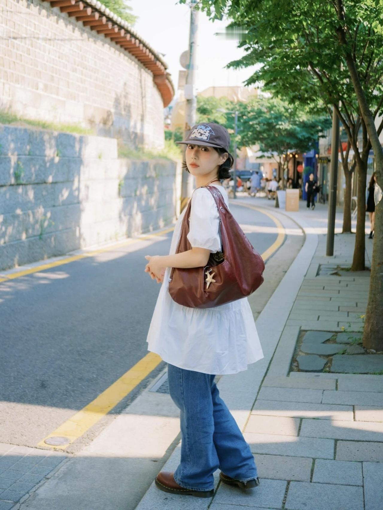 复古风穿搭,棕色棒球帽子与包包搭配,尽显时尚感!👒👜娇小玲珑的可爱女孩的穿搭风格系列棕色显气质穿搭 棕色贝雷帽穿搭 棕色帽子穿搭 酒红色帽子穿搭