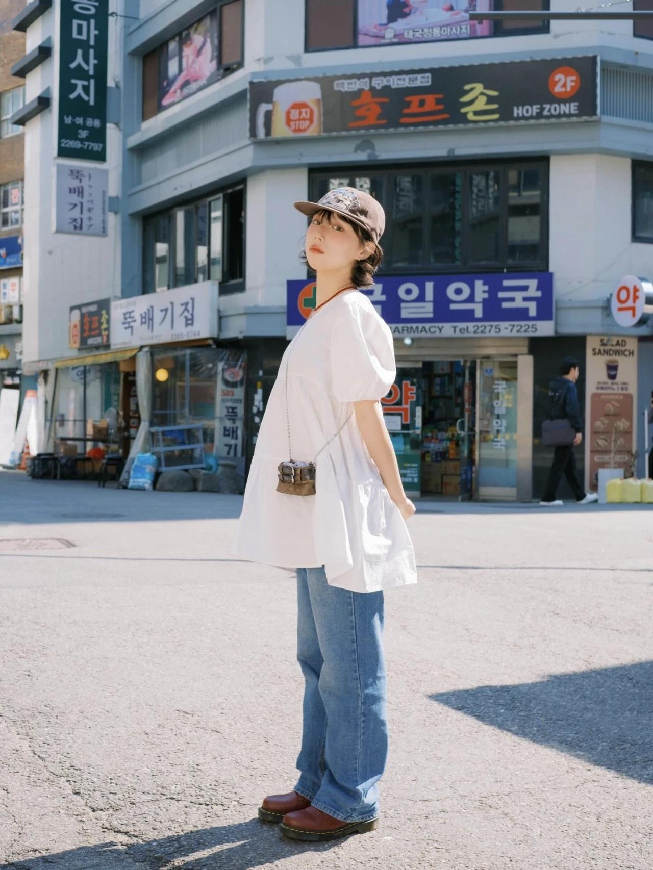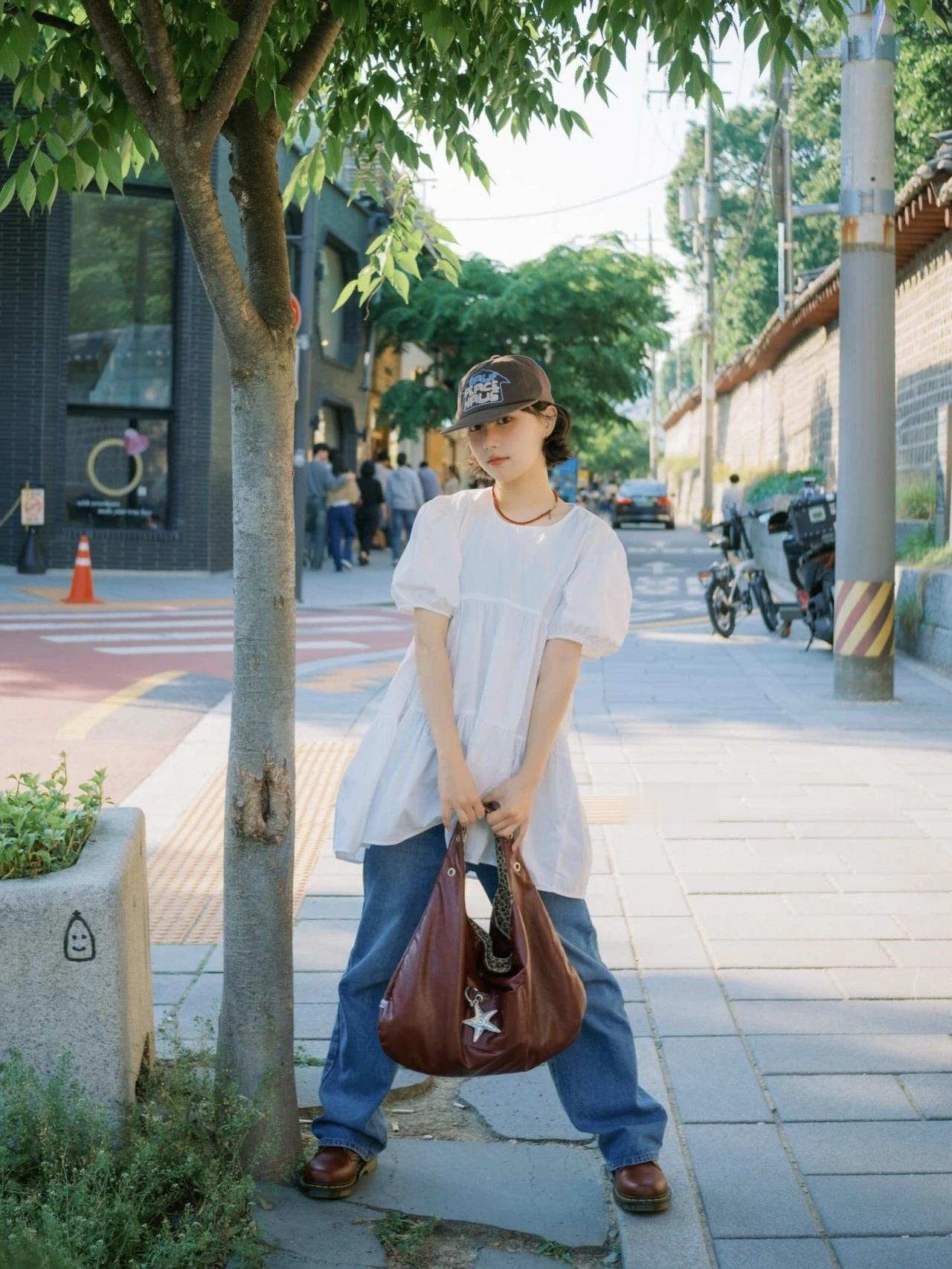 复古风穿搭,棕色棒球帽子与包包搭配,尽显时尚感!👒👜娇小玲珑的可爱女孩的穿搭