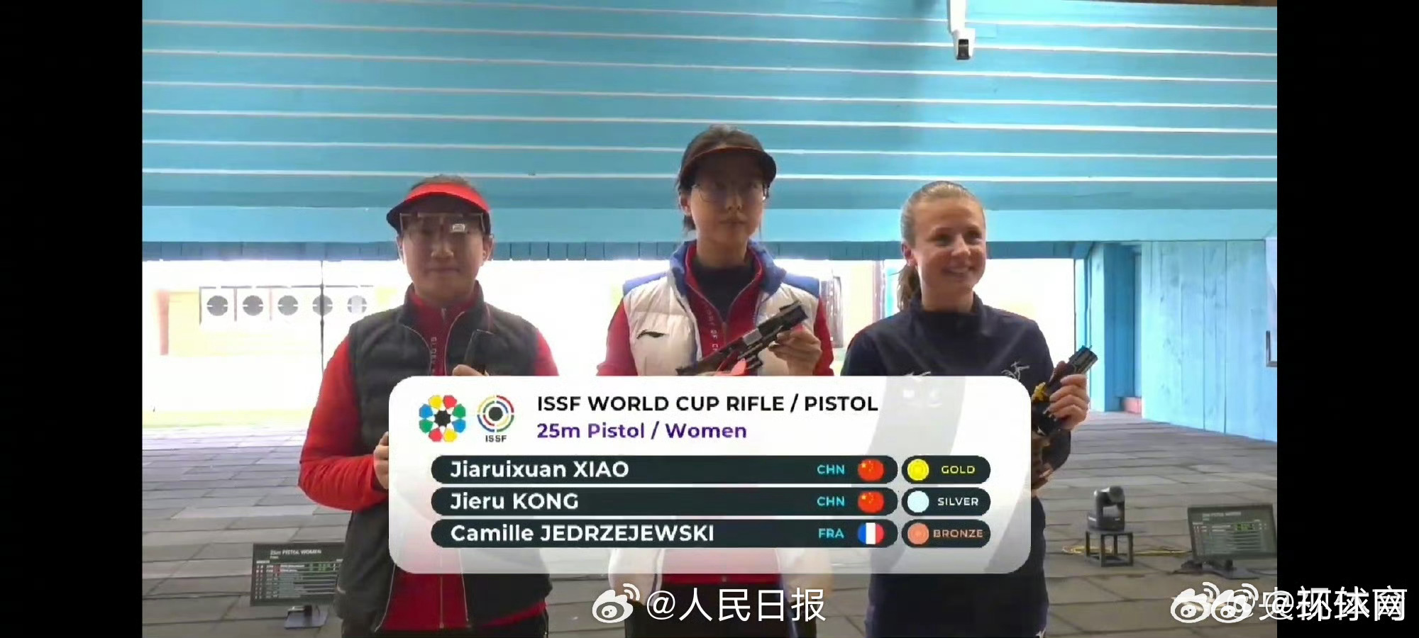 女子25米手枪比赛中,肖嘉芮萱和19岁小将孔婕如在资格赛中就表现出色,分别以第一和第三的身份晋级决赛。决赛阶段,两位选手发挥依然稳健,最终包揽冠亚军。法国选手获得第三名。
