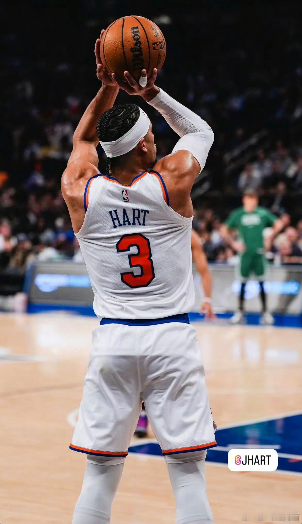 尽管哈特本赛季的三分球命中率高达40.6%,但他的外线产量较低,依然属于不被尊重的非空间点,在防守侧重上被对手针对放空。今天哈特在面对凯尔特人的比赛中却在三分球上6投4中,拿下23分远超赛季场的11.3分的数据,投入了杀死悬念的关键三分。尼克斯还真是吃饭睡觉打绿军啊。。。