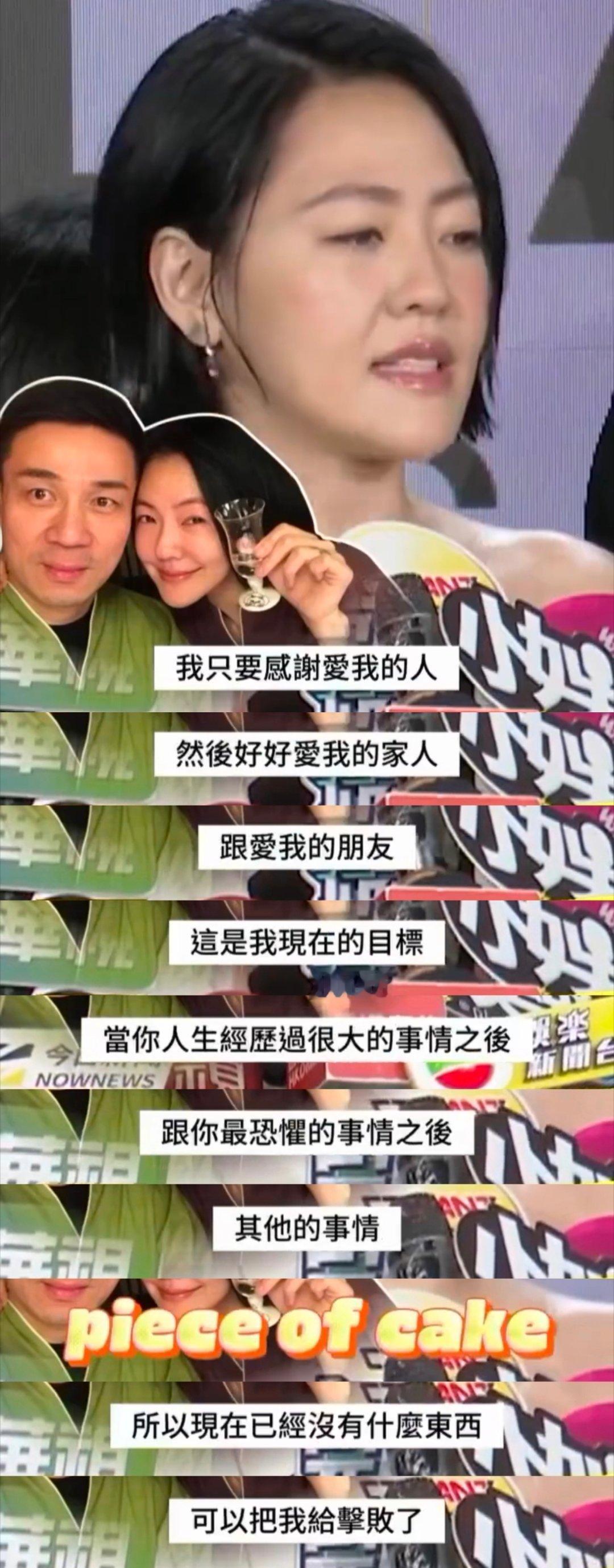 “当你的人生经历过很大的事情和你最恐惧的事情之后,其他的事情就是piece of cake”“所以现在已经没有什么东西可以把我击败了。”