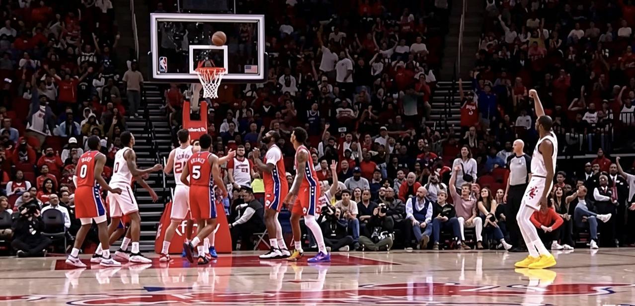 这一球,浇灭了76人反扑的火焰,毕竟火箭最多时领先28分,最后被76人追到只差5分!