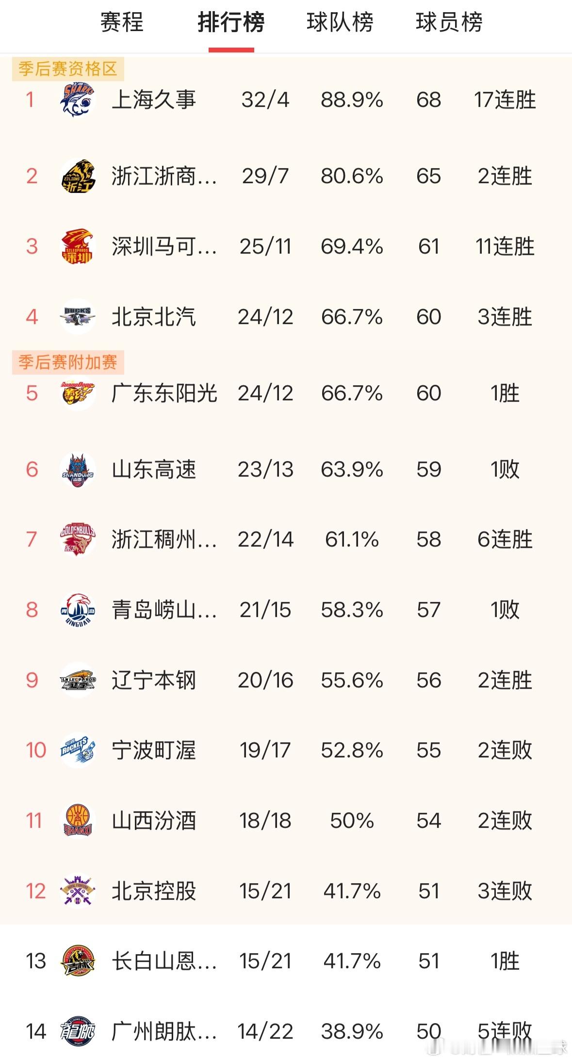 CBA排名大洗牌!广东跌第5,深圳冲第3,广州5连败几乎无缘季后赛!CBA第36轮战罢,积分榜迎来剧烈震荡!深圳男篮昨晚力克山西,豪取11连胜,强势冲上积分榜第三,稳稳跻身季后赛直通区;北京男篮延续火热状态,3连胜后飙升至第四把广东男篮挤到第五名。最让广东球迷揪心的是,广东宏远本轮取胜后,却因胜负关系跌至第五,落入季后赛附加赛区,收官阶段必须全力抢分,才能摆脱附加赛的不利局面。而广州男篮近期则彻底陷入低谷,5连败后排名跌至第14,跌出前十二,常规赛仅剩最后几轮,差距已难以弥补,季后赛希望几乎彻底破灭。接下来常规赛进入冲刺阶段,广东宏远需死拼每一场,力争重回前四!广东宏远广东宏远深圳男篮