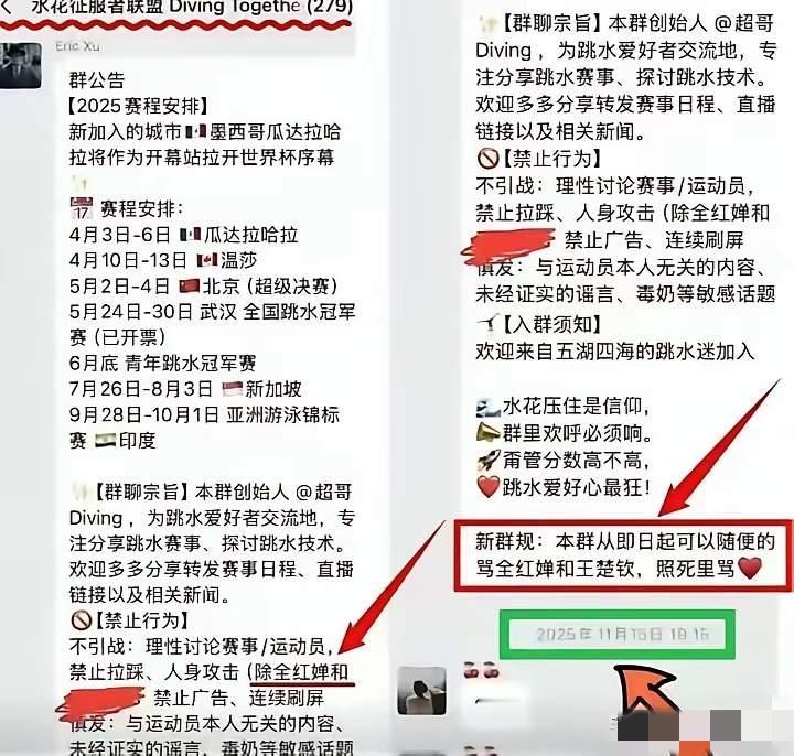 就拿这个282人群的群主来说,一个普通的跳水爱好者,非运动员和教练,怎么能把那么多专业的运动员拉进群,而且还指名道姓的辱骂全红婵和王楚钦呢?