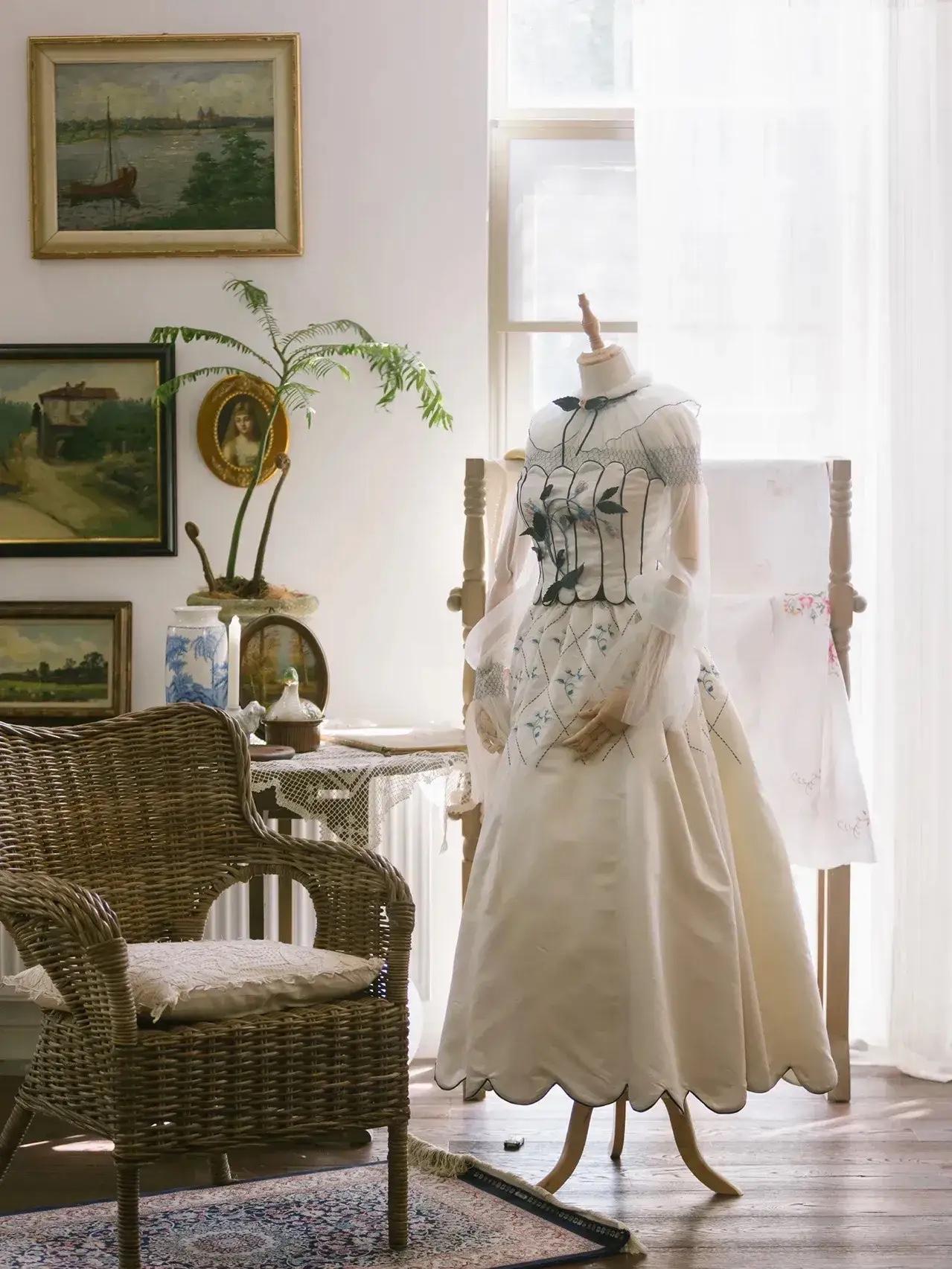 二楼是我们夫妻的卧室,还有一个小花园。我是一名服装设计师,尤其喜欢做婚纱。很多灵感都来自花草植物——月季的层叠花瓣、绣球的饱满轮廓。搬进来后,我在二楼的小院子里种满了月季和绣球。闲暇时,就在花园里摆一张小桌,喝茶、读书、和朋友聊天。风吹过来的时候,我觉得自己不是在成都,而是在某个南法的小镇。
