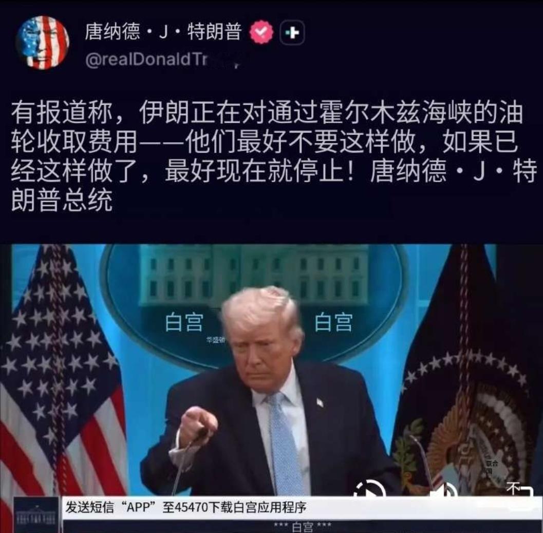 但是,对于被收费的国家来说,霍尔木兹海峡被封锁导致他们被收费也是由特朗普造成的,所以这个费用应该由美国替交,这在逻辑上也是说得通的。