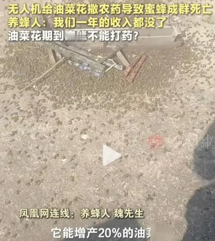 湖南衡阳油菜花盛开季,无人机喷药一夜间毒死数千箱蜜蜂,蜂农损失几十万瞬间归零,种植户保收成却撞上生态死结。
