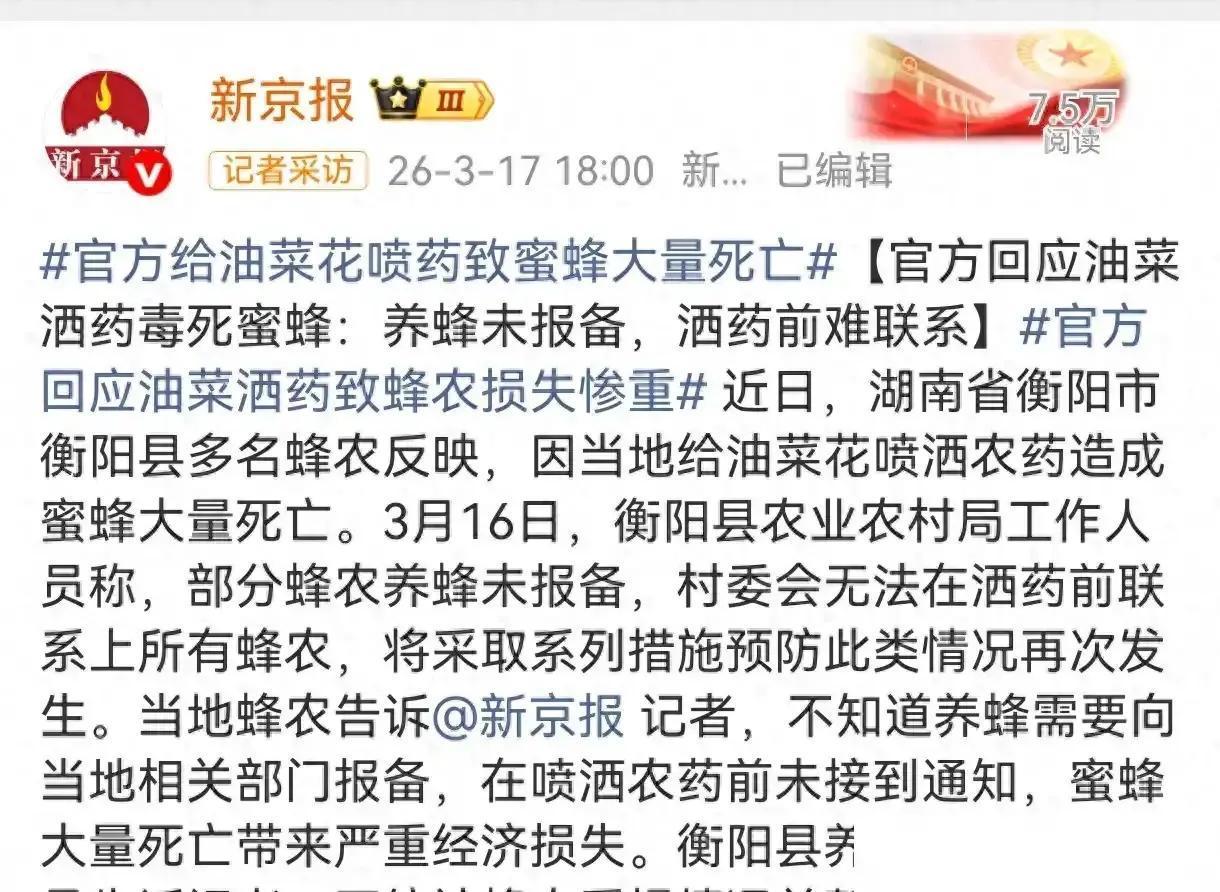 三方都是靠天吃饭的普通人,种植户怕病减产,蜂农怕蜂群灭顶,监管盼零事故。偏偏各管各的,细节一疏漏,最惨的是那些嗡嗡劳作却一夜清零的蜜蜂,和倾家荡产的养蜂人。流程再完善,也比不过一句及时的提醒来得实在。