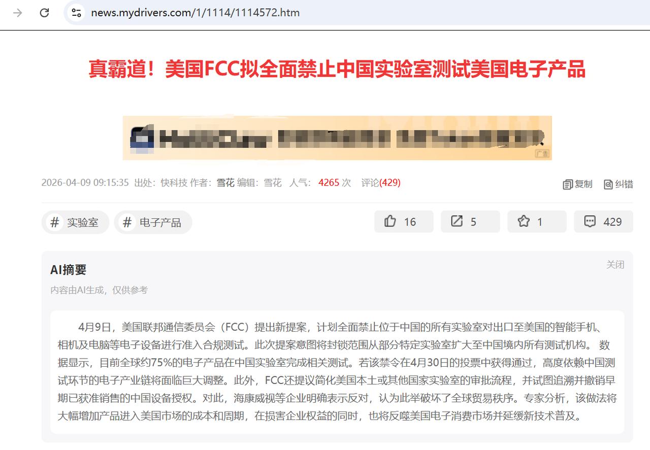 你做初一我做十五,是时候坚决敲醒美国联邦通信委员会(FCC)的美梦了!一觉醒来,美FCC彻底不装了,继多批次取消中国若干测试实验室资格之后,美FCC近日提出最新提案,拟全面取消位于中国的所有实验室对出口至美国的智能手机、手表、相机、电脑等消费电子及其零配件合规性测试认证的资格。