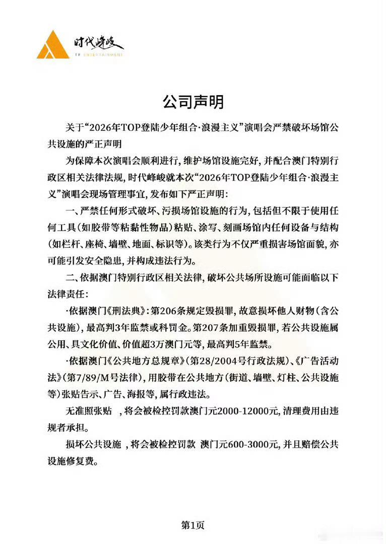 时代峰峻严禁破坏场馆的声明TOP发严禁破坏场馆的声明时代峰峻发了严禁破坏场馆的声明 !!