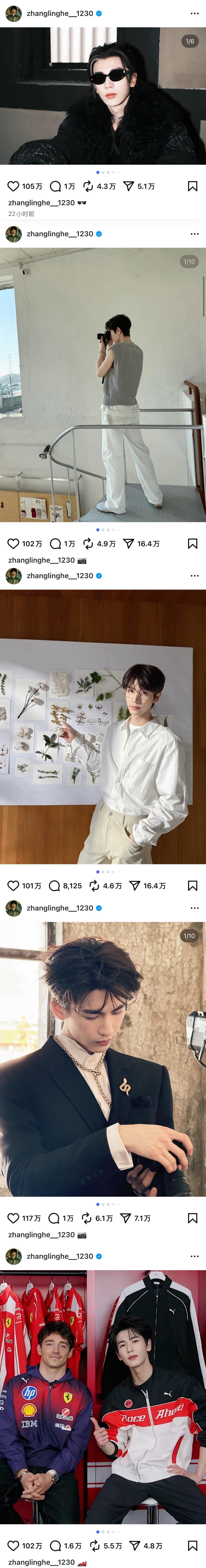 张凌赫ins已经有五个破百万帖了,还都是近期发的🔥