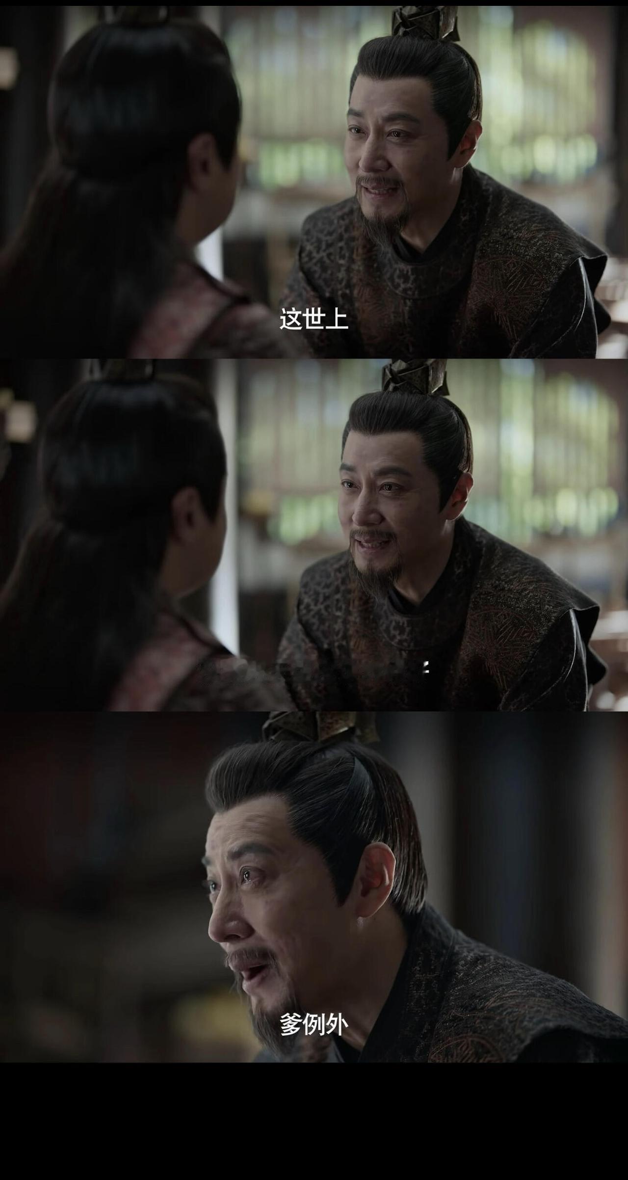 这个词,看一次泪目一次,一个父亲能给的最大的爱了。林相第一次见范闲时,也是因为范闲对待大宝和别人不同才接纳他。林相怕痴傻儿子听不懂,特意把“苟且偷生”解释成很容易理解的话。最后送林相离开的时候,大宝一直喊着“爹例外,爹例外”!我那个哭的啊[流泪]