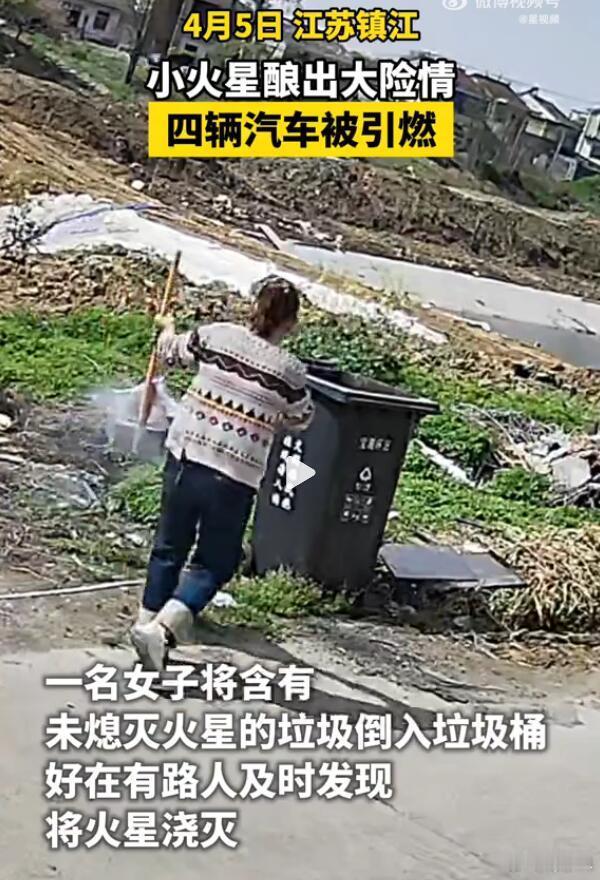 这确实是神人了,垃圾带着火星,不完全灭掉就扔进垃圾桶,然后不出意外的出意外了。还有一些抽烟的人,烟头都不灭掉就扔进垃圾箱,也是导致冒烟起火的,这帮人就没一点公共意识,自己怎么方便怎么来,把麻烦留给别人。求求你们,做个人吧。女子倒带火星垃圾引燃四辆车随手扔未熄垃圾4辆汽车被烧毁