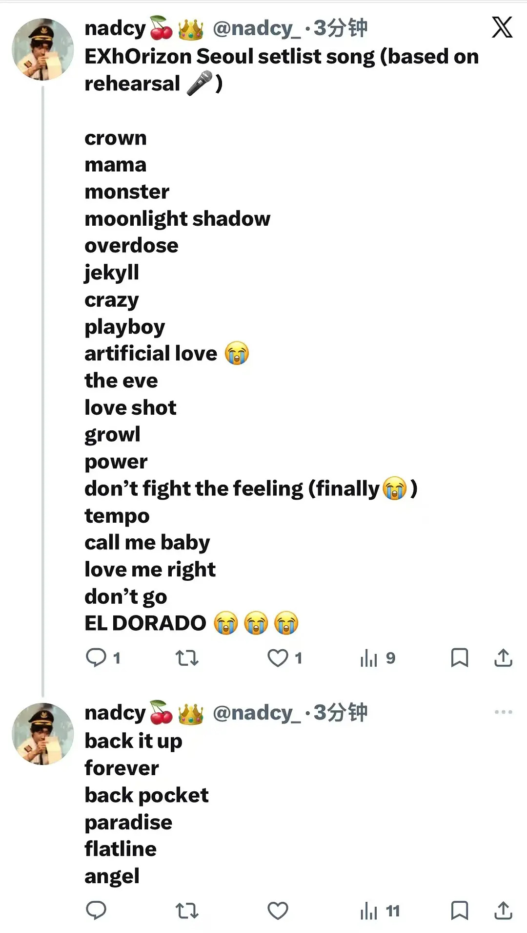 EXO彩排歌单 EXO今天演唱会的彩排歌单,有好多经典老歌