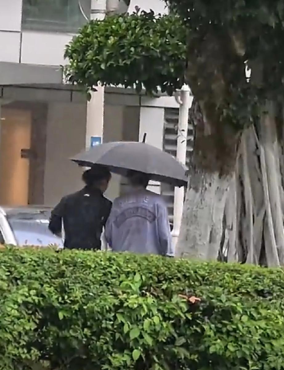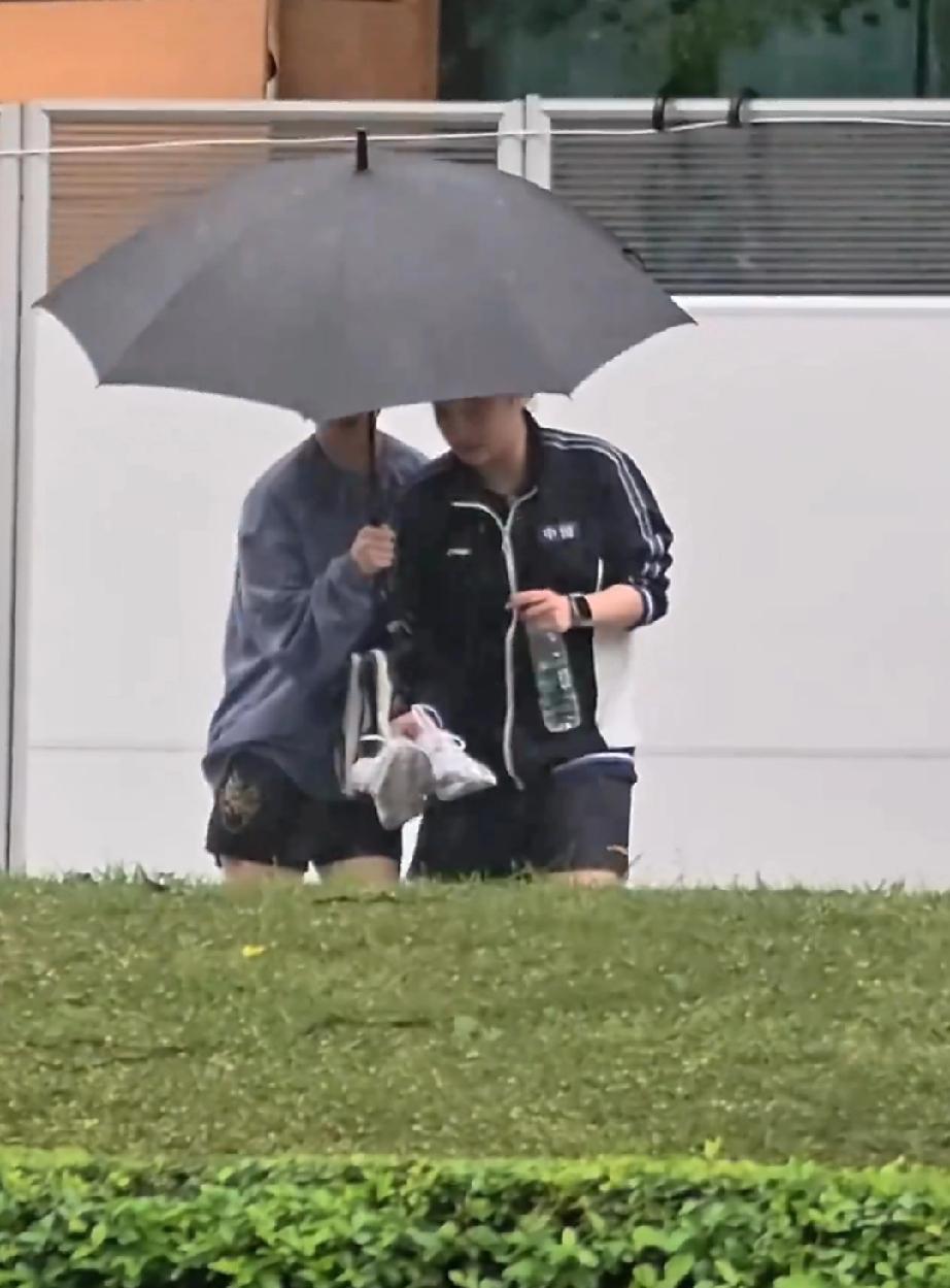 今日中午成都下雨,王曼昱与徐奕在室外也打上了伞。