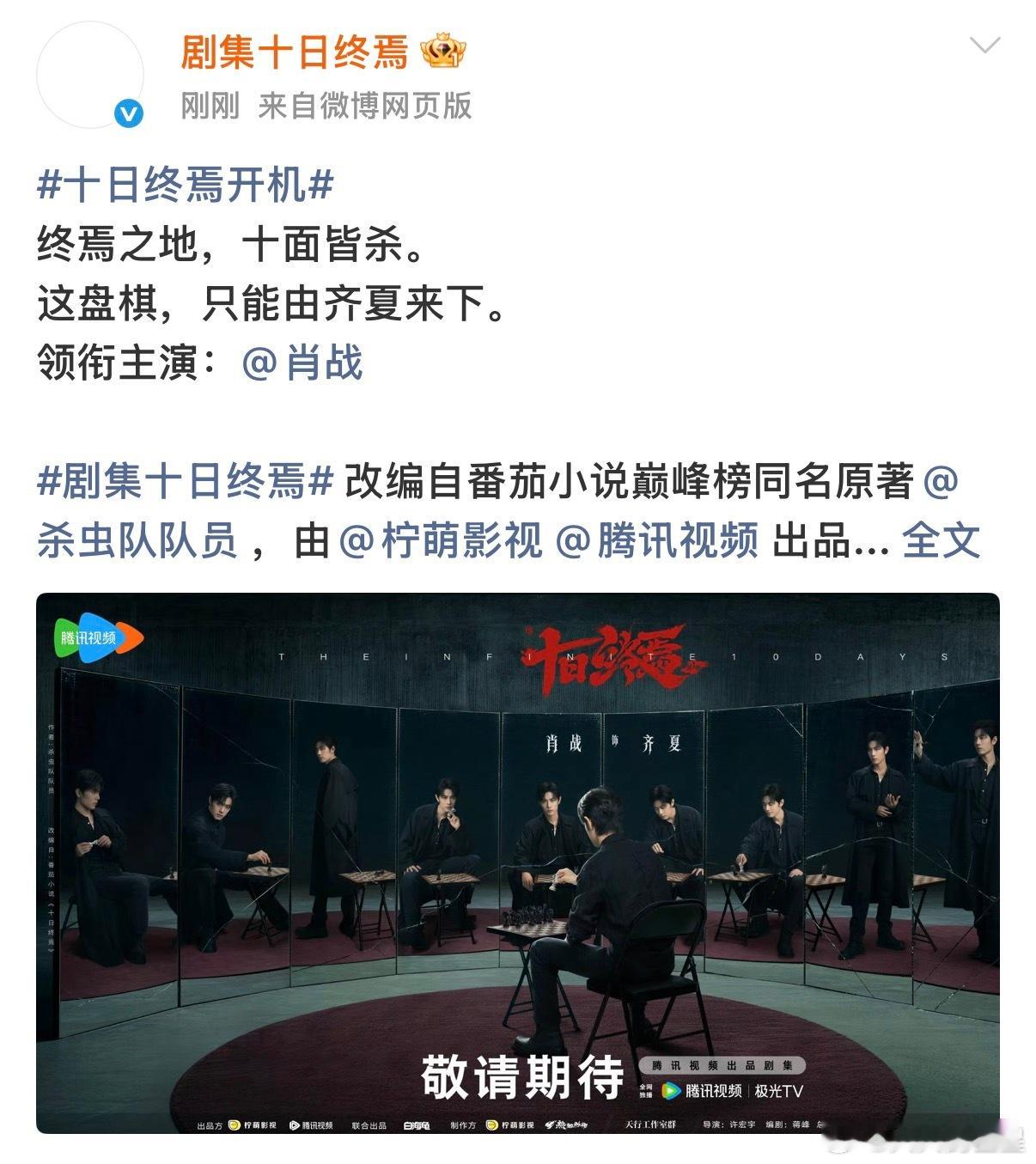肖战十日终焉对镜海报十日终焉官宣了领衔主演肖战 超级无敌大男主来袭