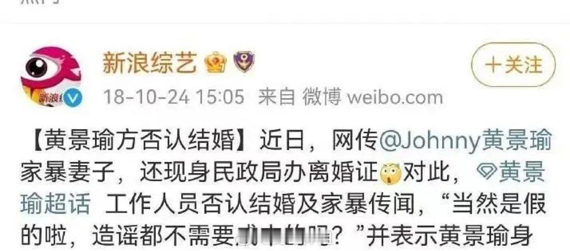 黄景瑜曾否认结婚所以到底有没有结婚离婚,这次又到底有没有谈呢,哪句话是真的曝黄景