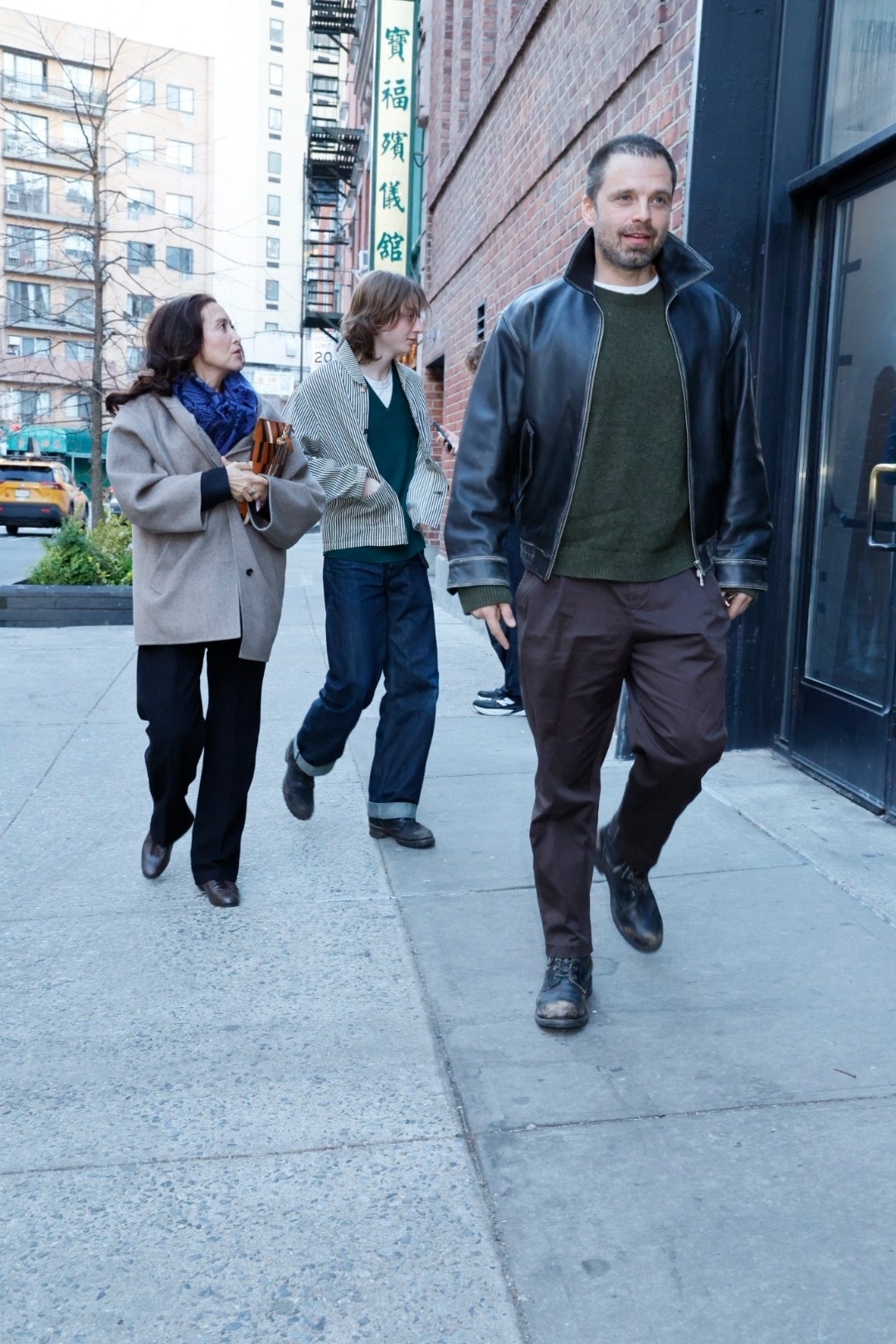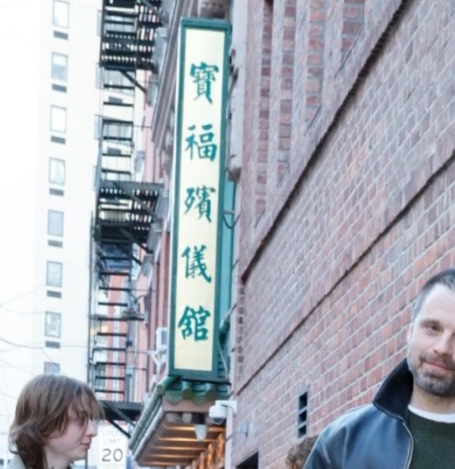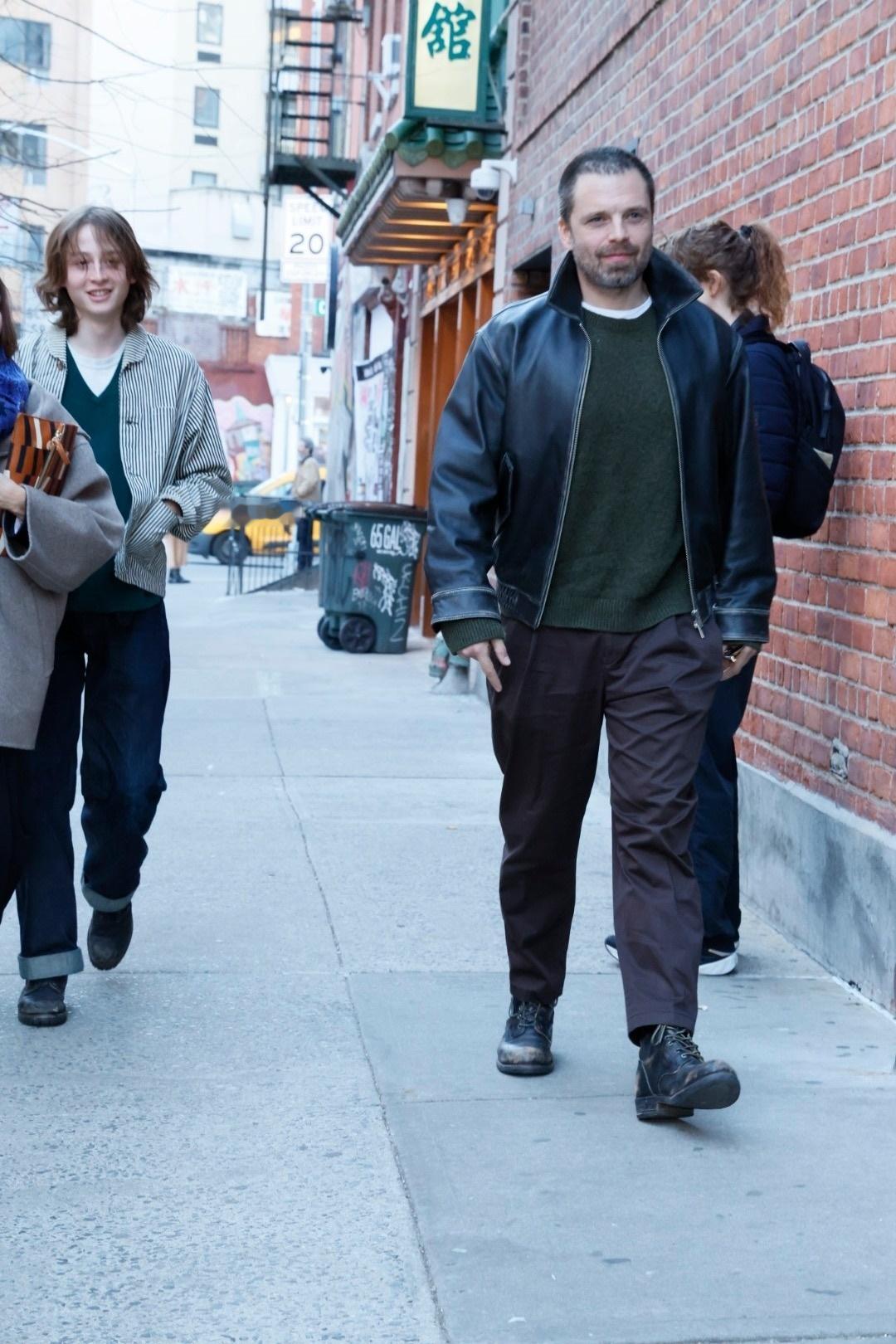 近日,「金球奖影帝」塞巴斯蒂安·斯坦(Sebastian Stan)在纽约市曼哈顿的坚尼街附近出街,现身「宝福殡仪馆」楼下。