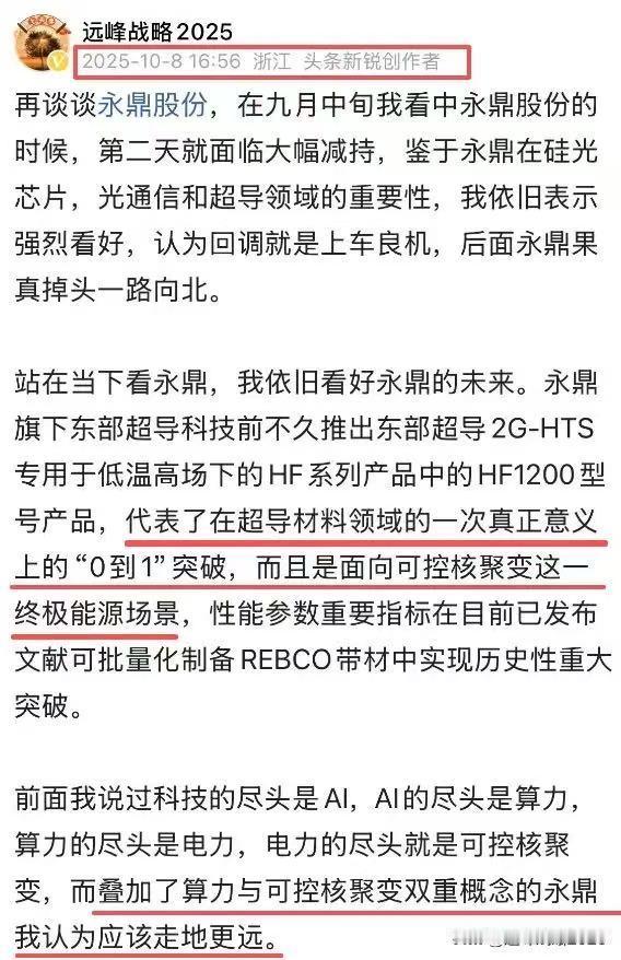 永鼎股份一柱擎天,直冲板上钉钉,再创历史新高,这个公司自去年九月中旬开始挖掘以来,表现确实超过我的预期,令人刮目相看。过去我一直说他身上具有长牛气质,现在回头看,确实非同凡响,比我预期的还要牛。