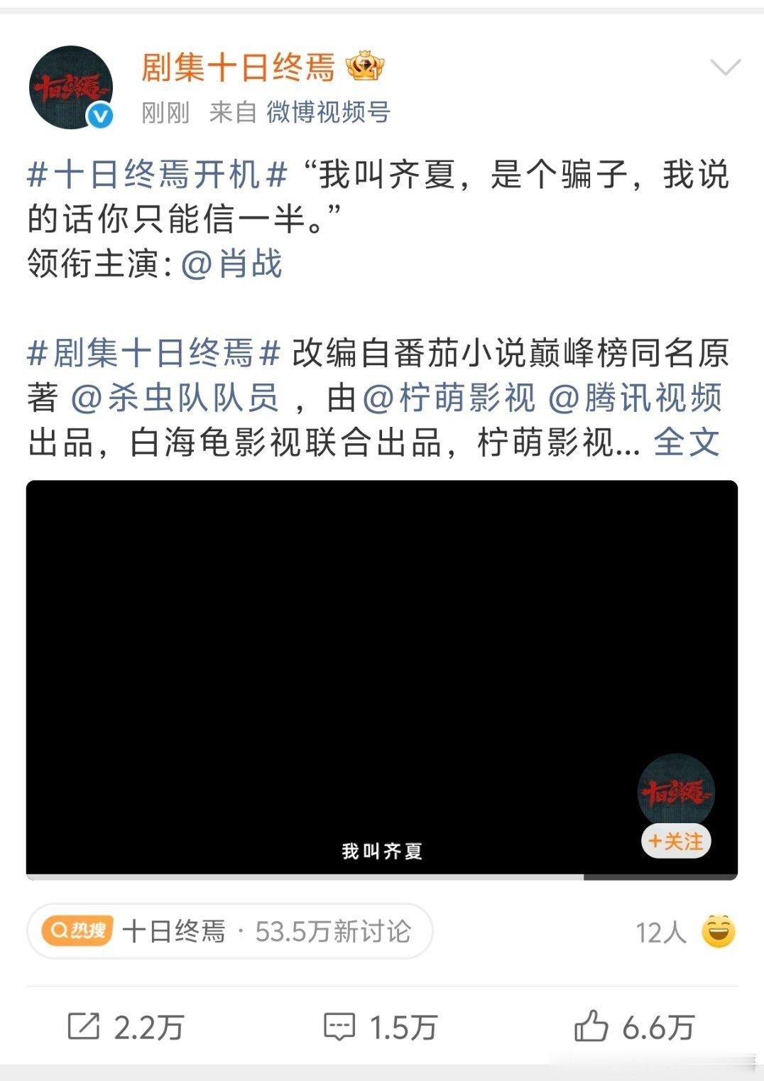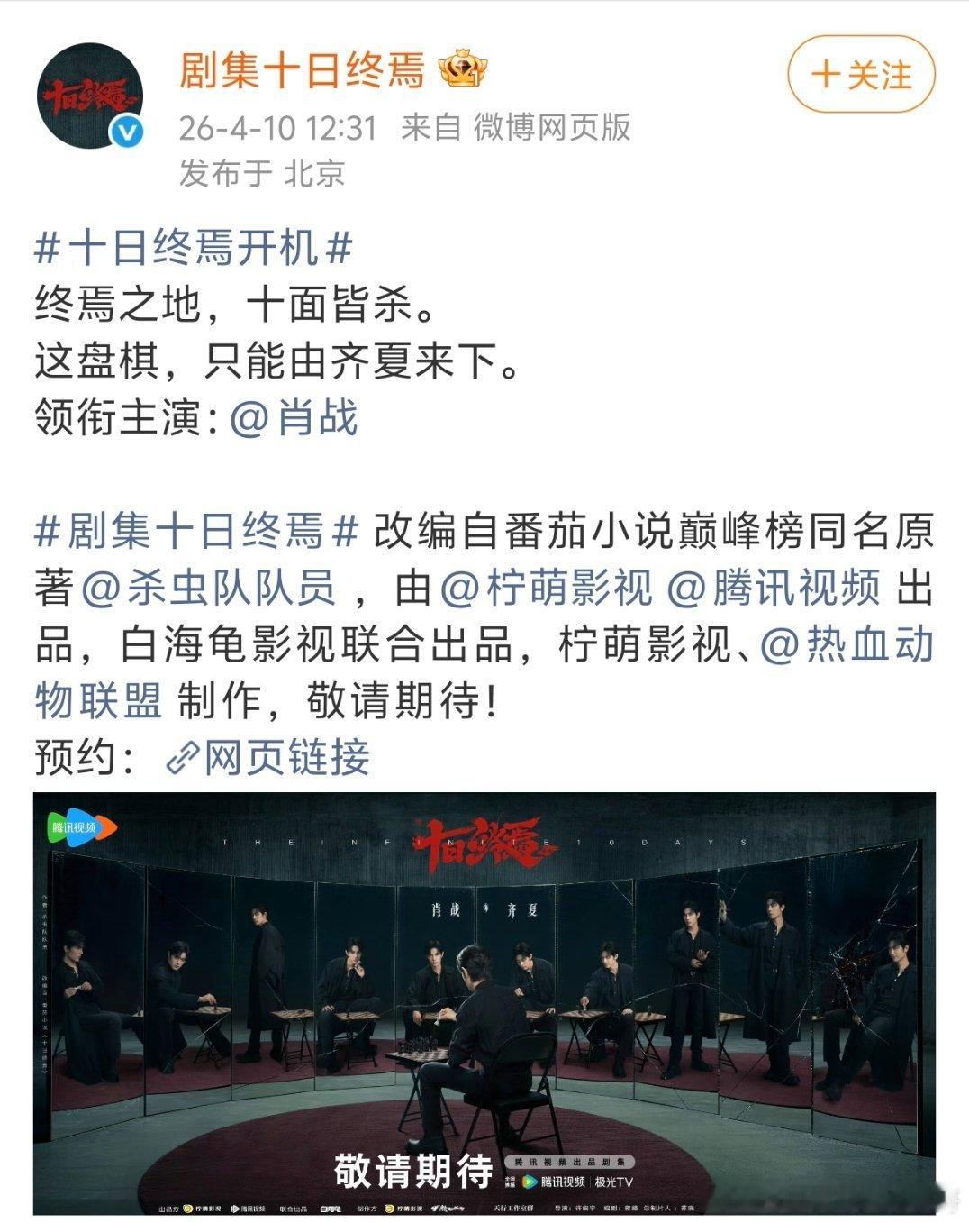 肖战十日终焉官宣,大卡点大海报大回车大男主