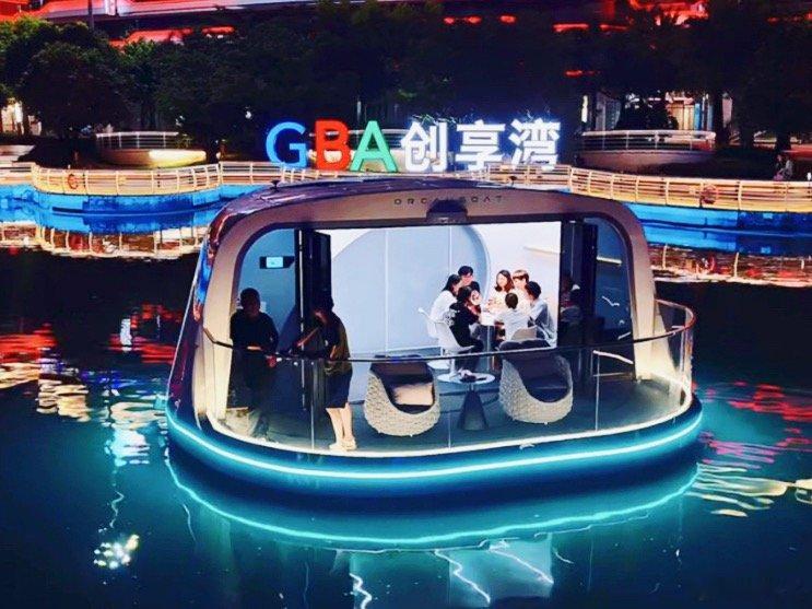 广州南沙微度假新地标来了 广州南沙首条无人驾驶智能游船航线在蕉门河闪亮登场!科技感爆棚的流线型船体,搭配简约科技白,颜值超高。船内没舵手却精准航行,一键操控温湿度、玻璃私密性,点餐便捷,还有KTV嗨唱,360度全景视野将两岸风光尽收眼底,安全感也满满,三条航线随心选,短线赏精华、中线打卡地标玩趣味、长线解锁更多景,夜游更是浪漫到爆,聚星花园还有非遗美食和手工艺体验,智能游船+非遗+夜经济,多元魅力一站式感受。快来广州南沙共赴美好微度假之旅!粤分享粤精彩 广州·蕉门河景区