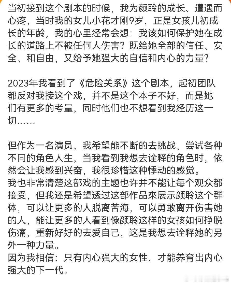 终于理解孙俪为什么会接这部剧了!身为妈妈,她想通过《危险关系》这个剧本,给女儿一