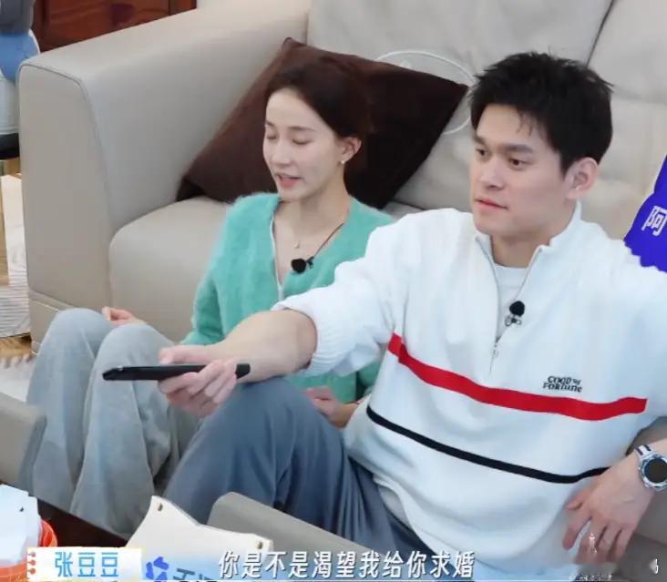 张豆豆问丈夫孙杨:“你是不是渴望,我跟你求婚?”孙杨虽然有点害羞,但犹豫了一下还