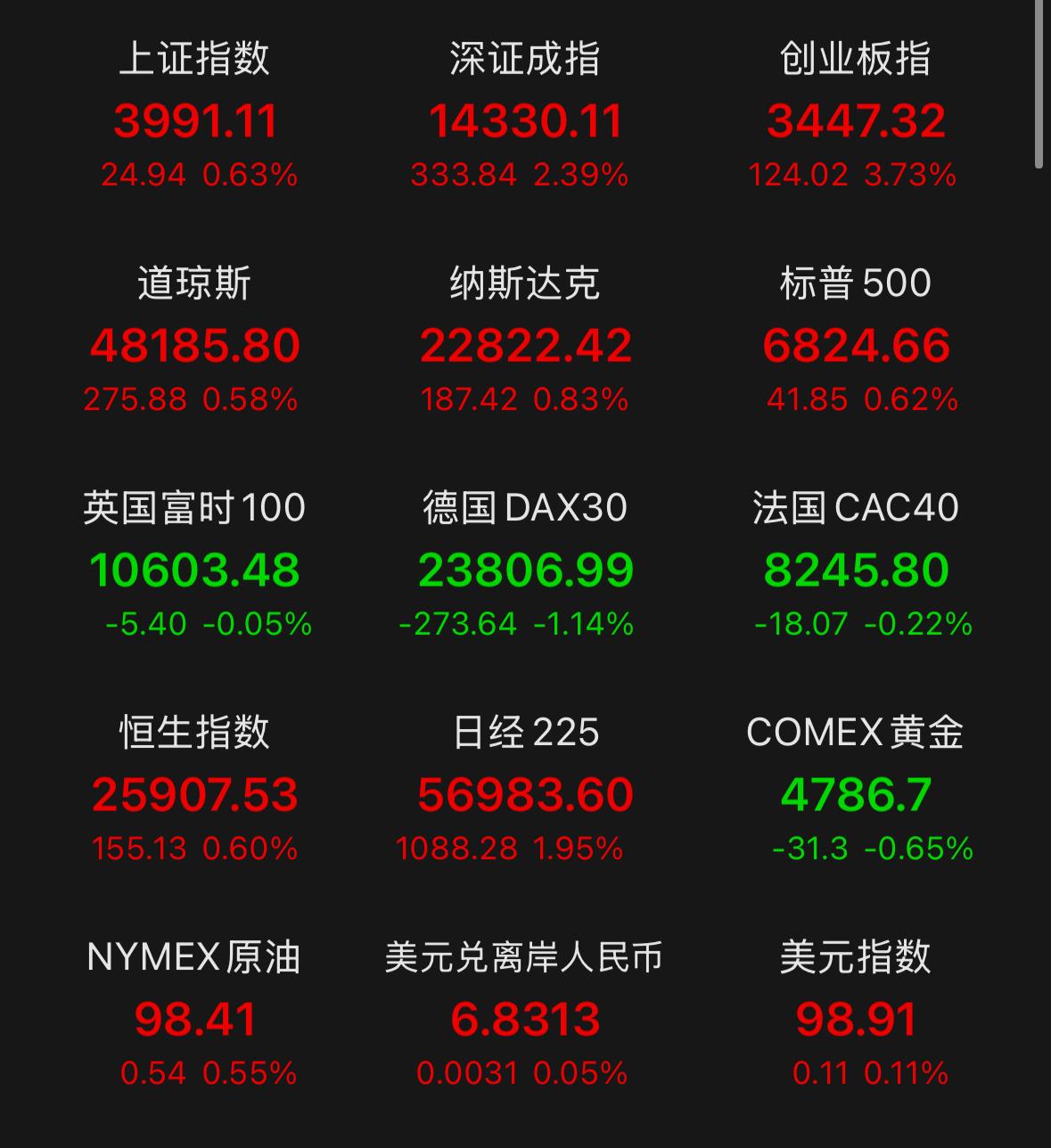 而且PPI环比已连续六个月上涨,也是关键信号,此外中药相关价格涨幅较上月扩大0.6个百分点,创下48个月以来最大涨幅,原油价格上涨是推动相关指数走高的主要原因,还是希望油价涨幅能有所控制,切实保障民生,截至11点50分,布伦特原油报96.64,日内大涨1.74%,韩国综合指数上涨1.82%,恒生指数上涨0.64%,恒生科技指数上涨1.45%,全球主要市场呈现整体明显回升态势,这一轮回升既有油价阶段性波动的影响,也有三大股指同步上行的带动,而中国资产整体走强,与国内经济数据持续改善形成明显正相关,基本面是市场运行的核心基础,经济是股市的晴雨表,这一观点我始终坚持。