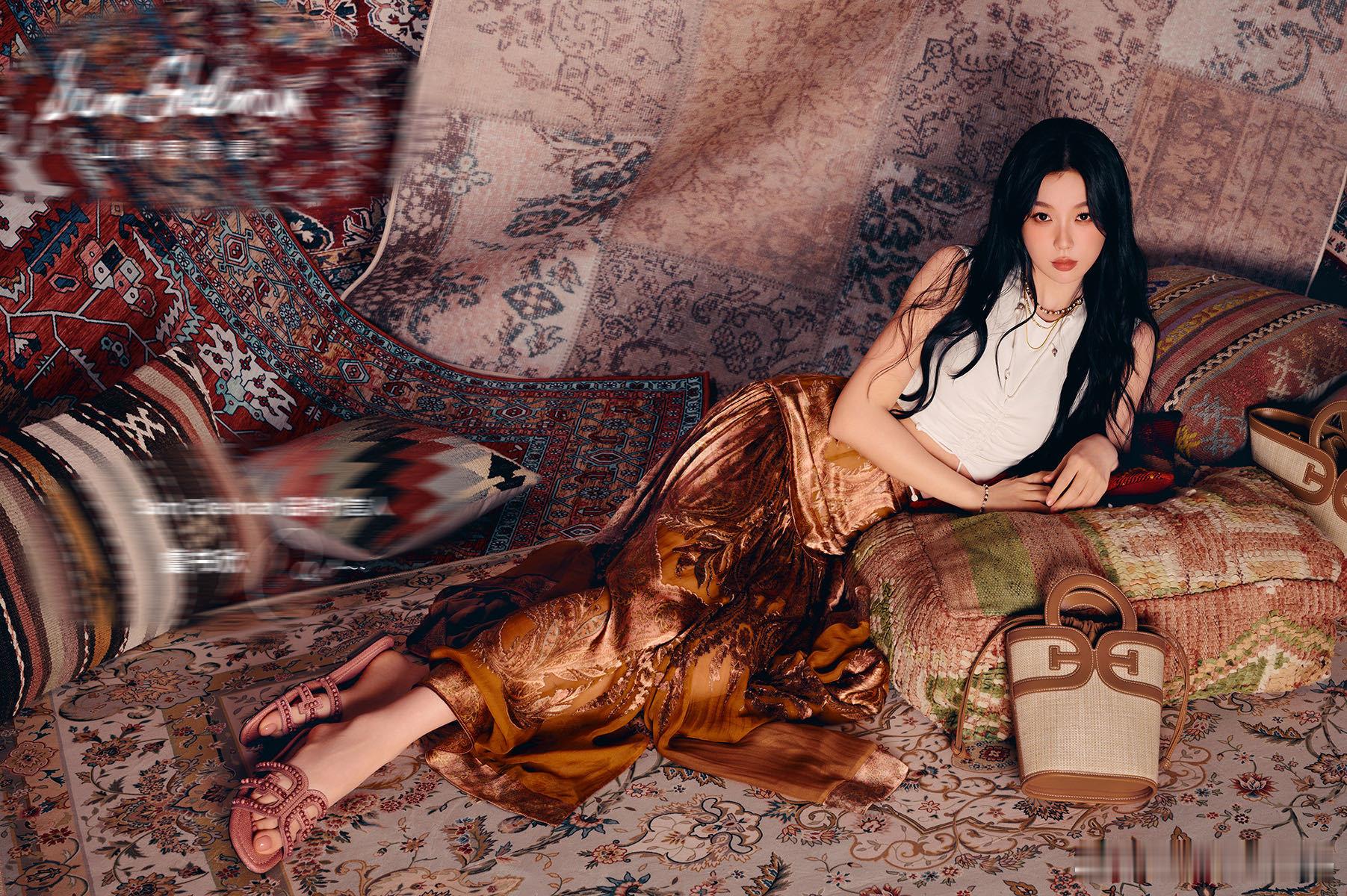 虞书欣波西米亚风造型虞书欣都市游牧风适配度拖鞋简约舒适,搭配波西米亚风裙装,虞书