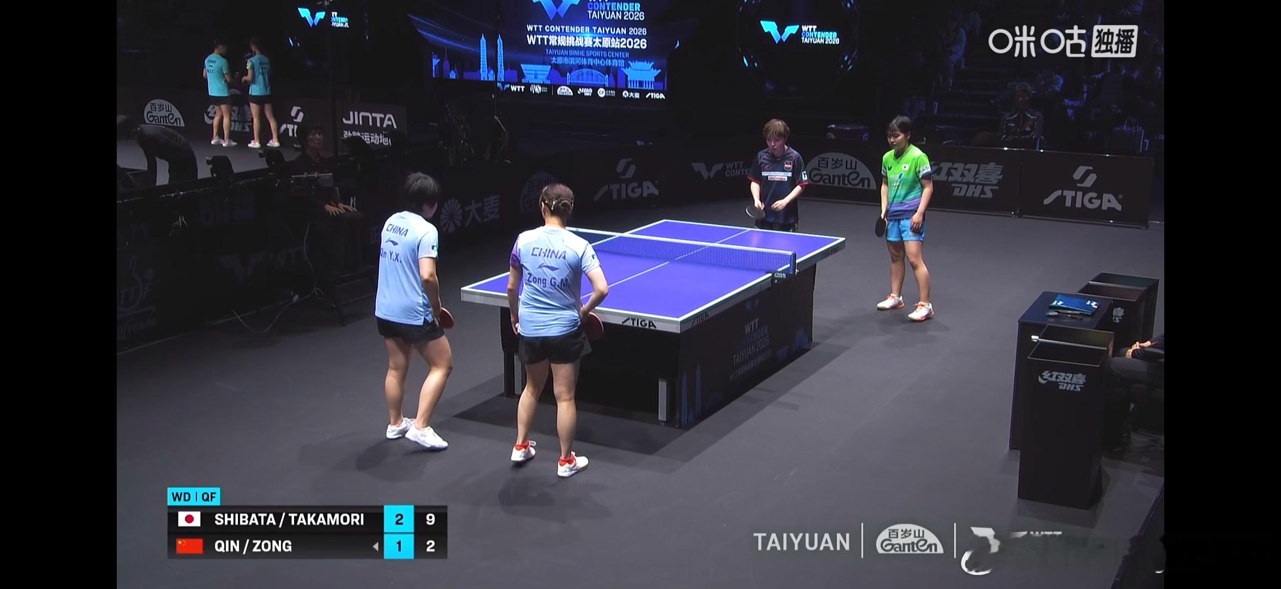 WTT常规挑战赛太原站2026wtt 女双1/4决赛:🇨🇳覃予萱/纵歌曼1比3芝田沙季/高森爱央🇯🇵(11-7,7-11,8-11,2-11)