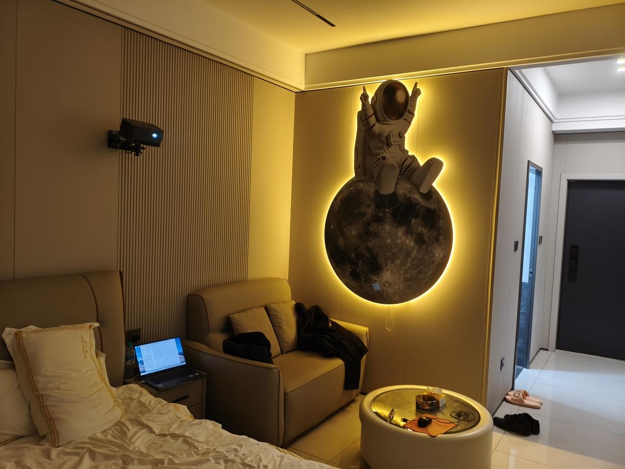 公寓太先进了!无值班人员,无前台,钥匙密码盒,自己去取!公寓很先进进入都没有电视机了,都是一个大投影,不过都是时代的表现,这特别好,毕竟时代与时俱进!