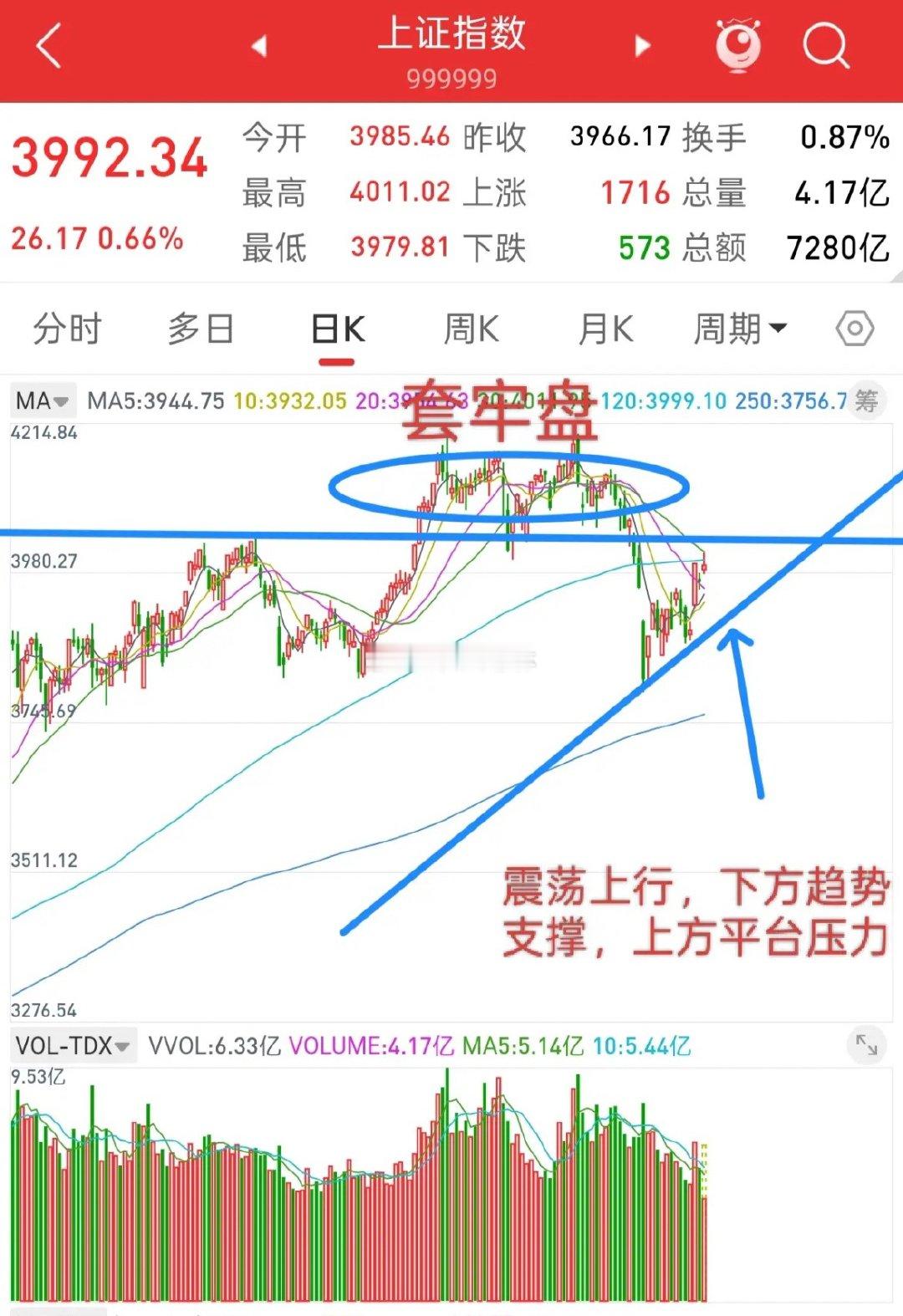 这个标题说了三遍了,不是因为今天涨了,才说,说实话,今天依然没有买点,还是那句话,4025前顶平台以上全部是套牢盘,现在这个位置进场,没有性价比。