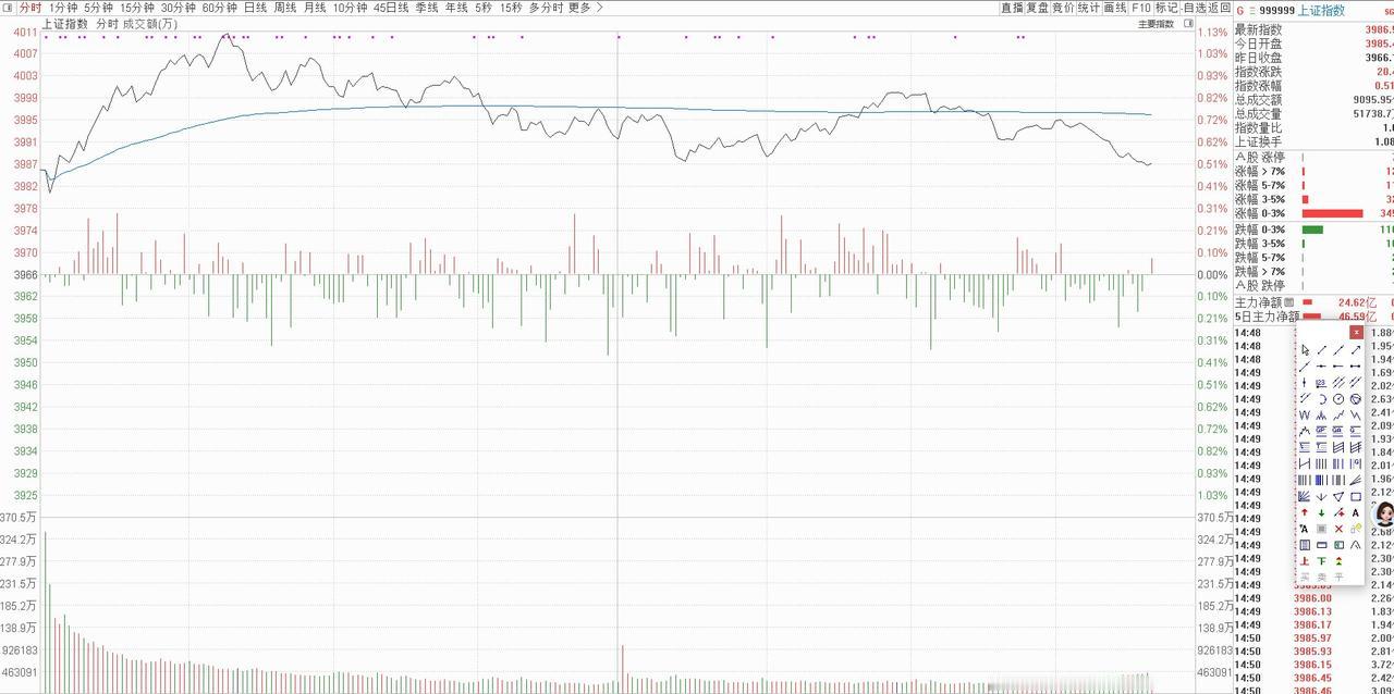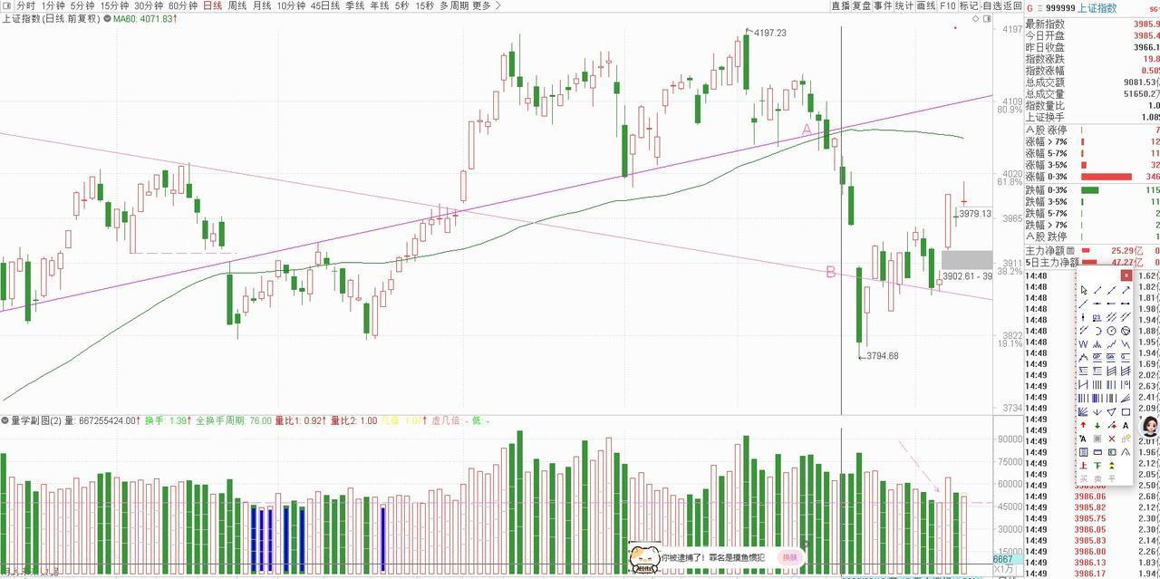 基于以上对当前盘面的分析,结合量学逻辑与关键点位支撑,我对2026年04月13日(下周一)大盘的盘前三线进行明确划分,为当日操作提供精准的支撑与压力参考:上线4005点,作为当日的核心压力位,若能有效突破且量能配合,大盘有望进一步向更高点位发起冲击;中线3986点,作为当日的多空分水岭,若股价能站稳该点位,说明市场强势格局延续,反之则可能出现阶段性回调;下线3980点,作为当日的关键支撑位,若回调不破该点位,可视为正常的震荡消化,若有效跌破,则需警惕短期调整风险。