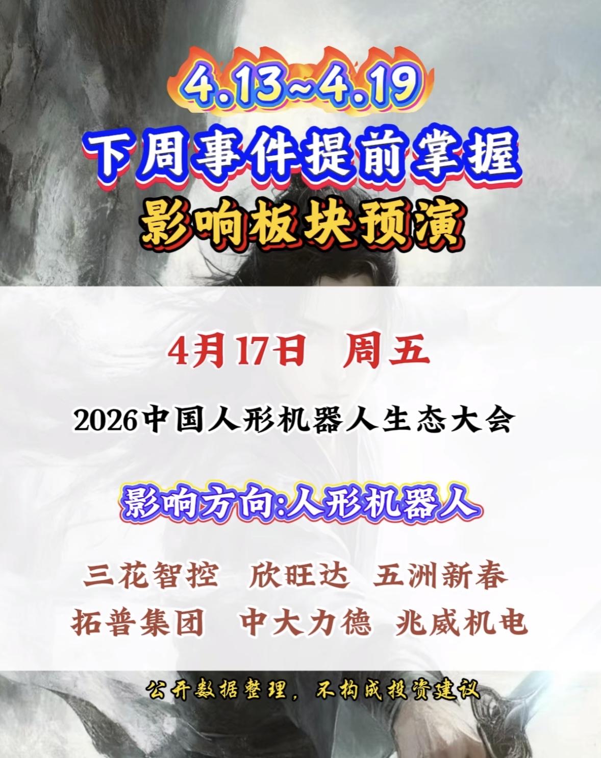 下周(4.13 - 4.19)A股市场有不少重要事件值得关注。从走势来看,整体基调是震荡修复、先抑后扬、结构分化。