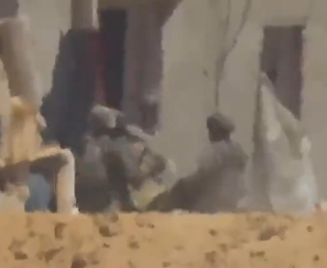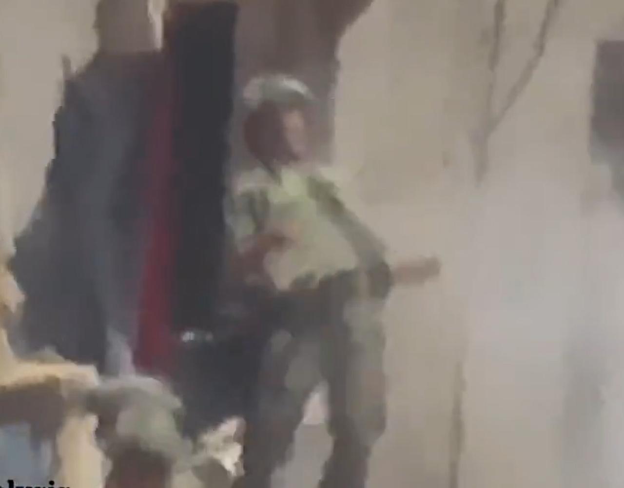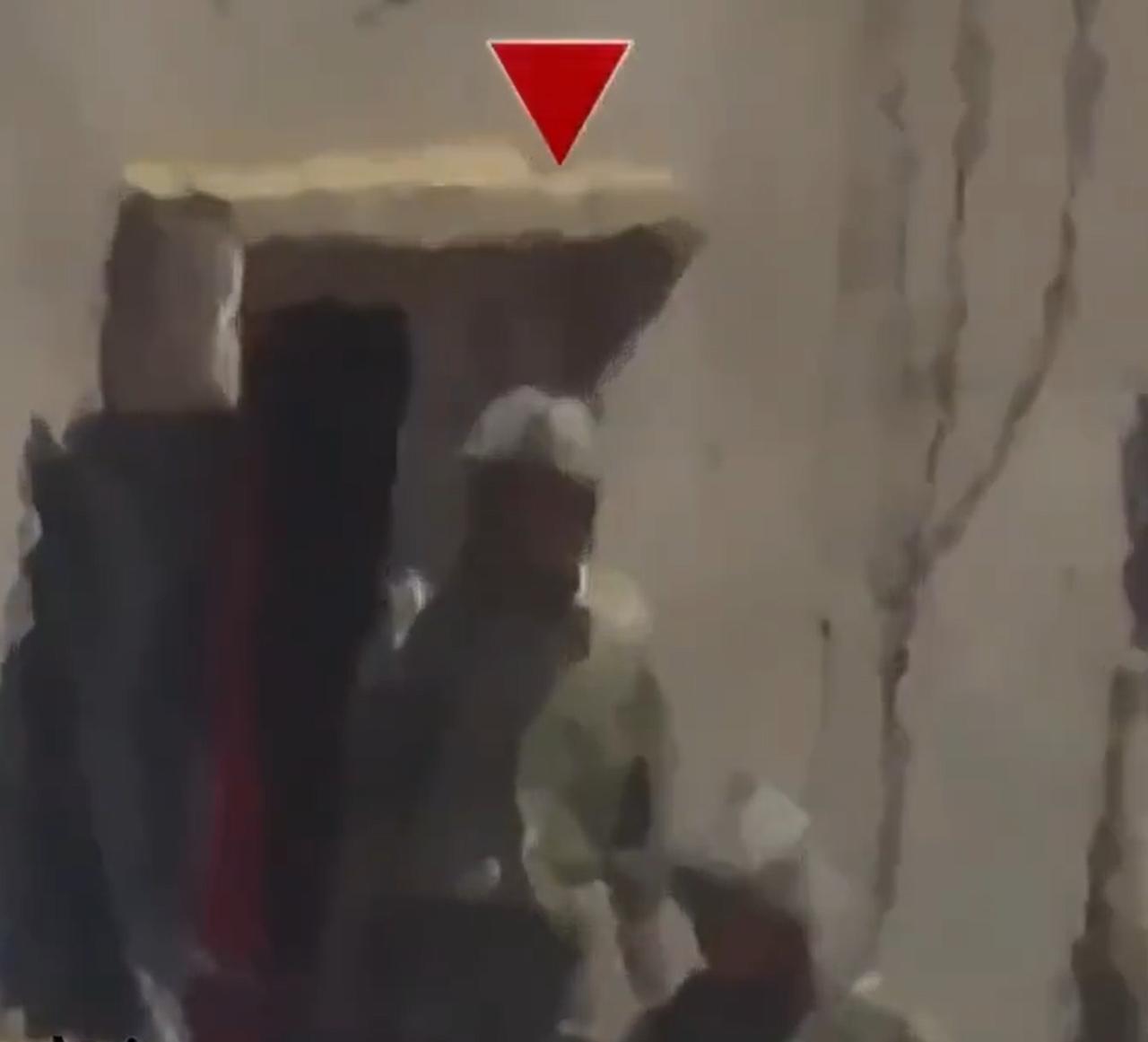 在图二的目标被击中之后(图三),其他三名以色列士兵,赶紧抬着同伴往屋里走(图四)。