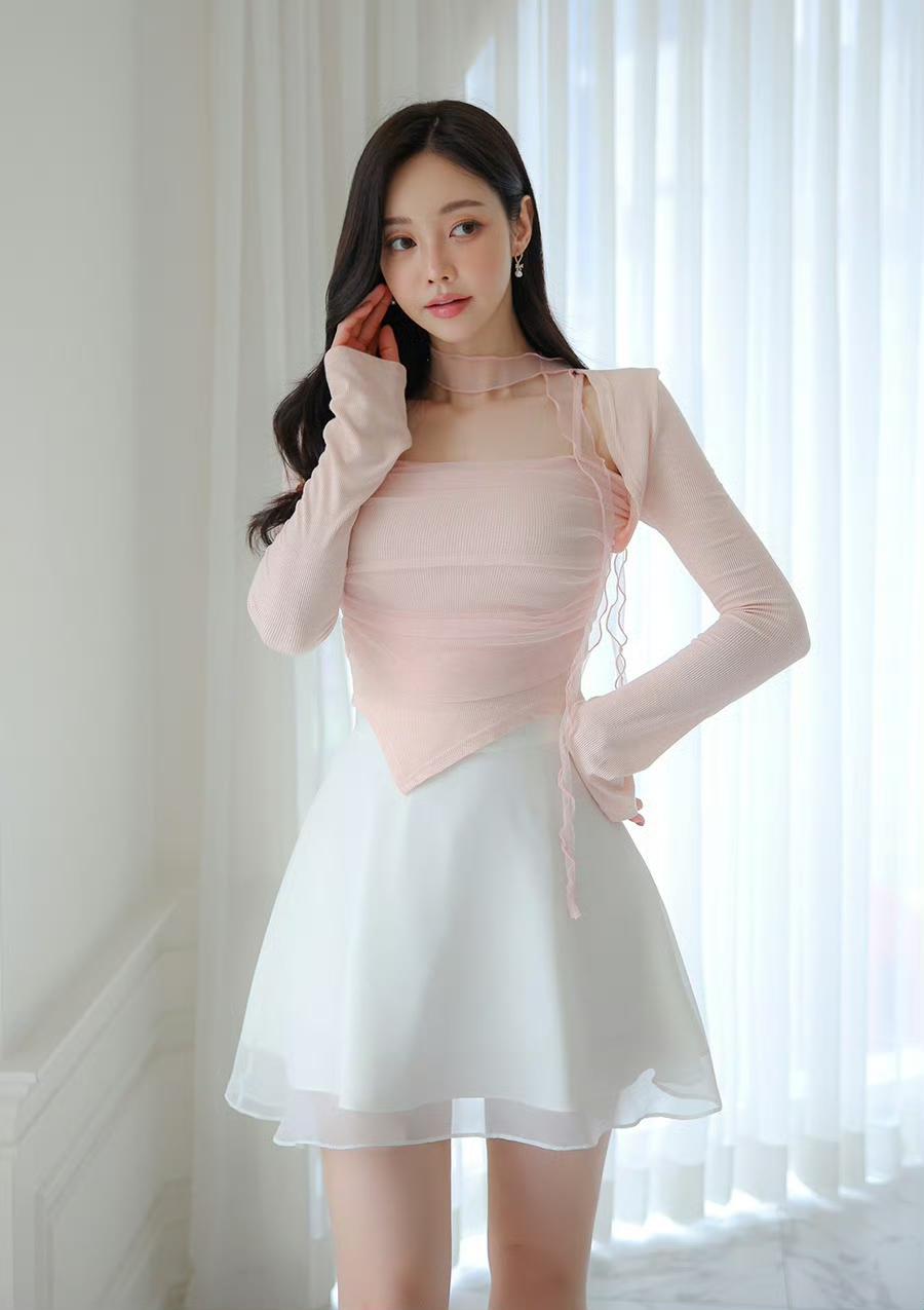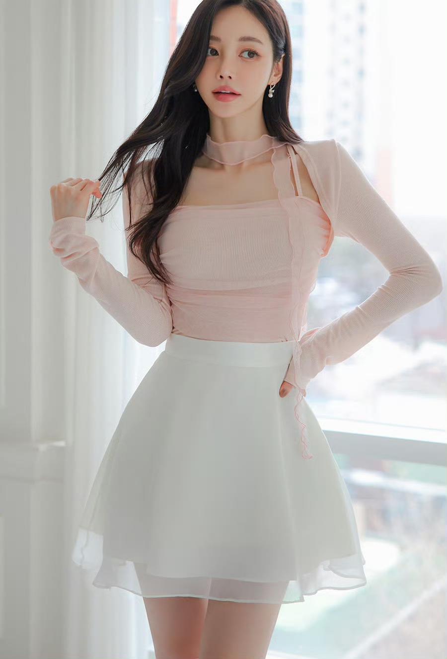 半透的网纱裹着软乎乎的温柔,A字短裙衬出纤细的腿线