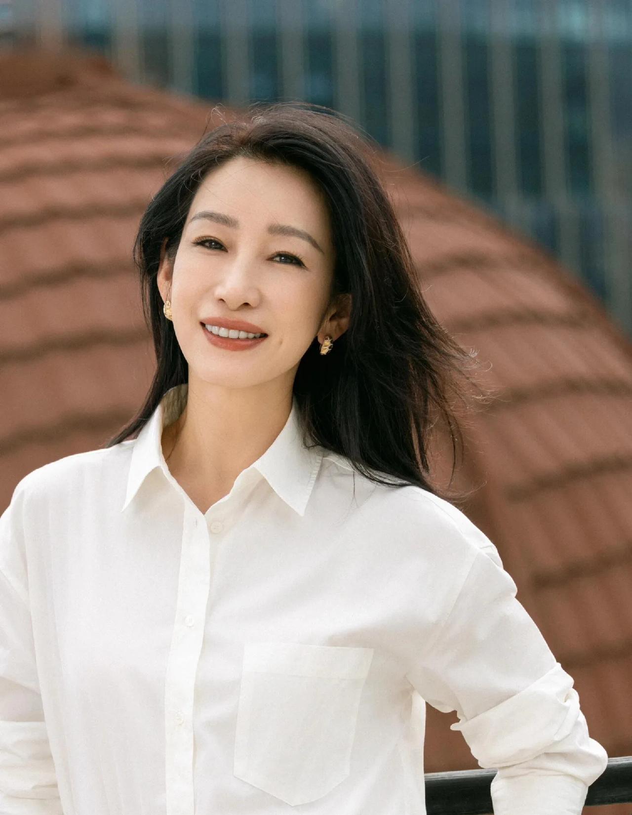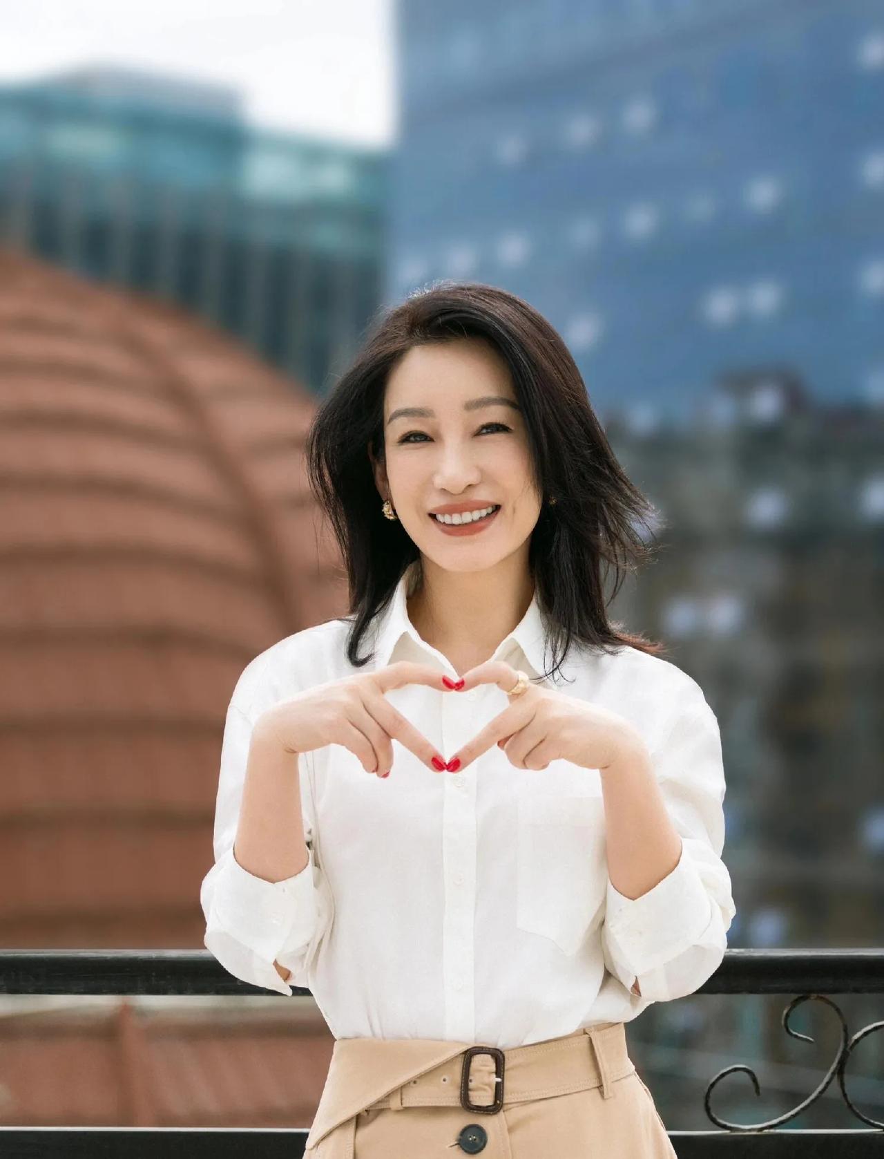 秦海璐这套穿搭,直接把70后女性的高级感焊在身上了!🔥 白衬衫+卡其半身裙,简