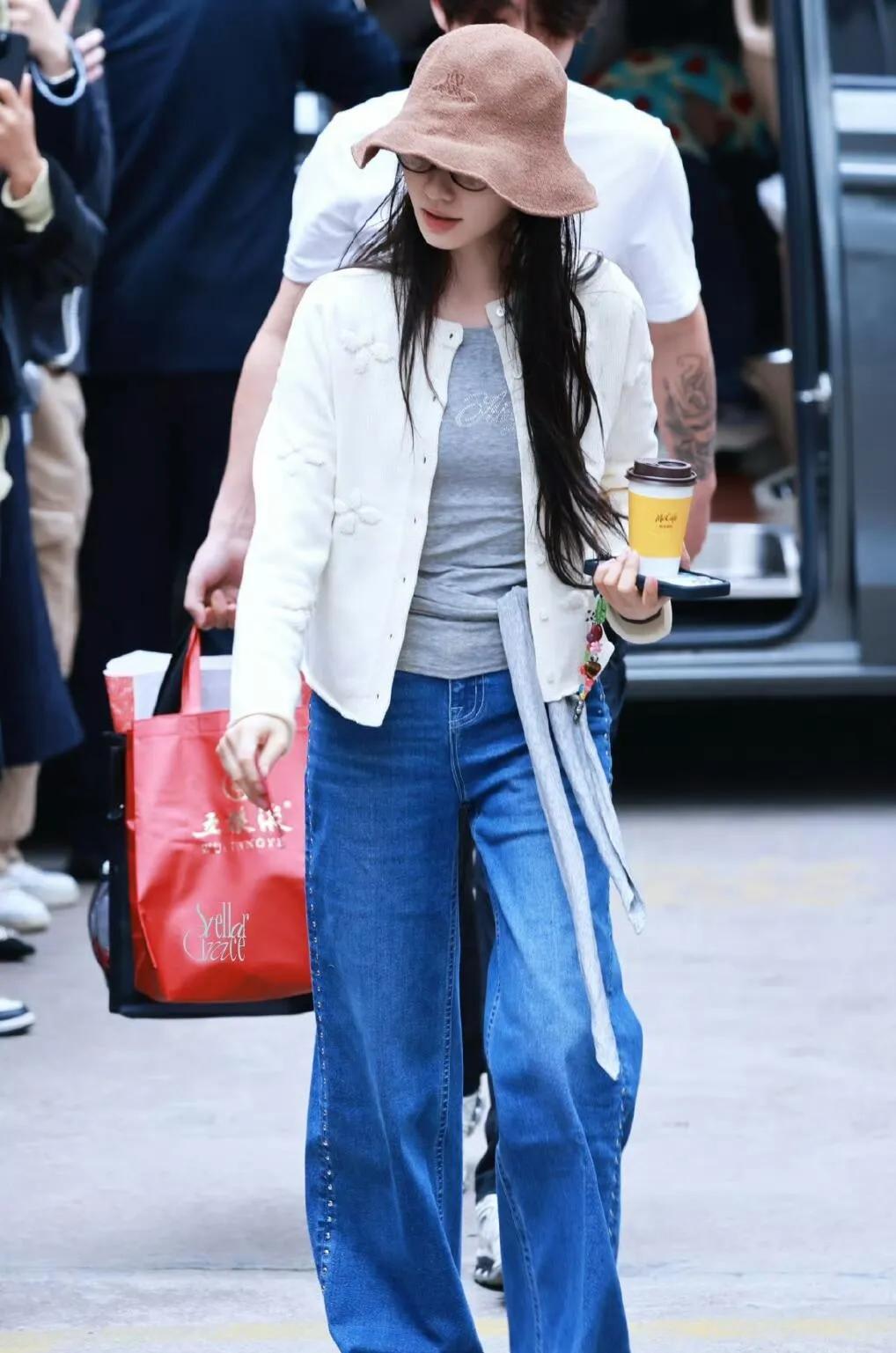 谁懂啊!林允这套私服太减龄了! 针织开衫+牛仔裤,休闲随性,日常穿搭的天花板!