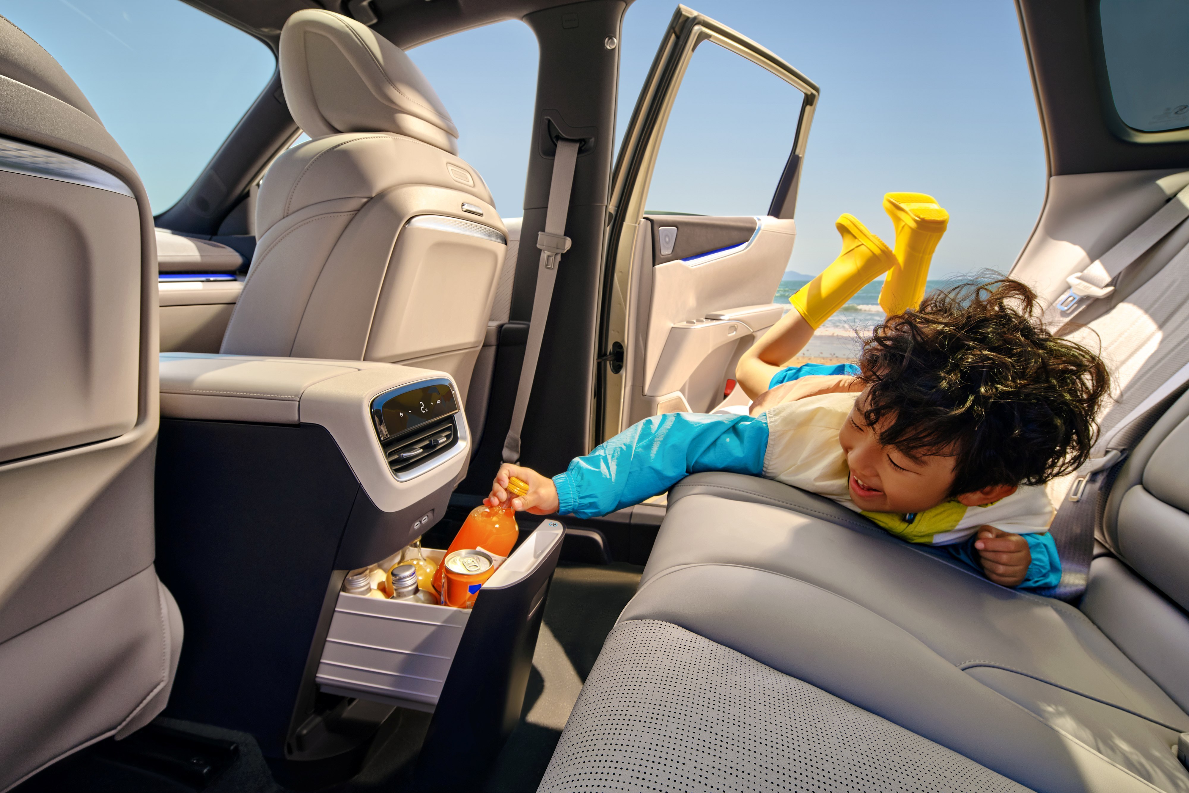 后排靠背支持电动调节,最大能放到125°。全车座椅还能直接放倒,“双人床”“单人床”由你设置。